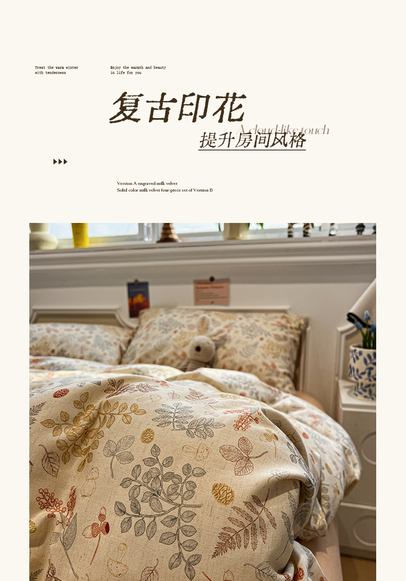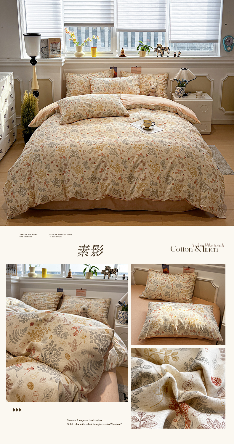 (总)忆生活 2025新款秋冬复古风全棉加厚磨毛四件套,简秋-咖,花汐,花颜-红,璃月-绿,漫枝-灰,漫枝-绿,骑士,芊墨,童年,玩伴,叶语,夜雨-咖