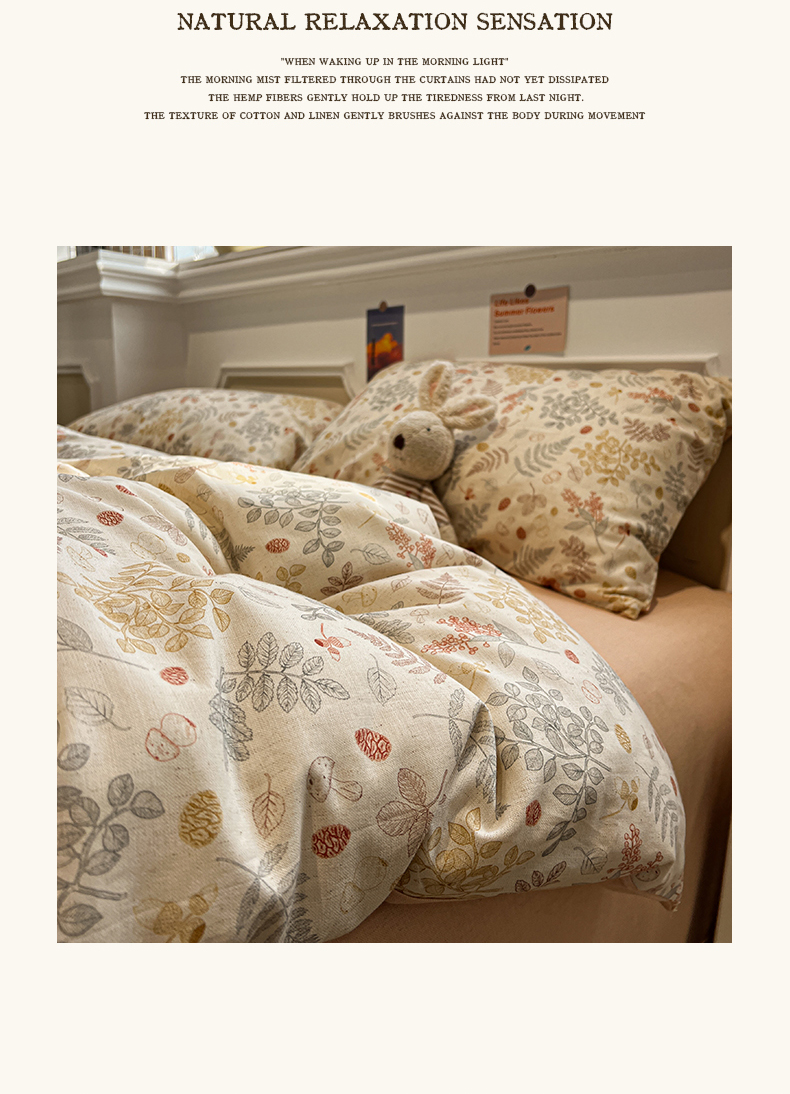 忆生活家纺 2026新款复古田园风棉麻四件套 素影