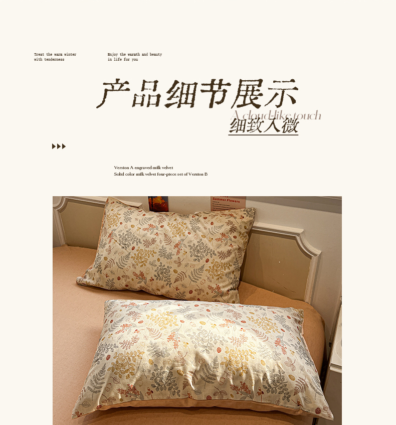(总)忆生活家纺 2025秋冬新品软糯缇肤绒印花贝壳边四件套,卡拉-灰,南笙-咖,南笙-绿,浅夏-咖,素影-酒红,素影-紫
