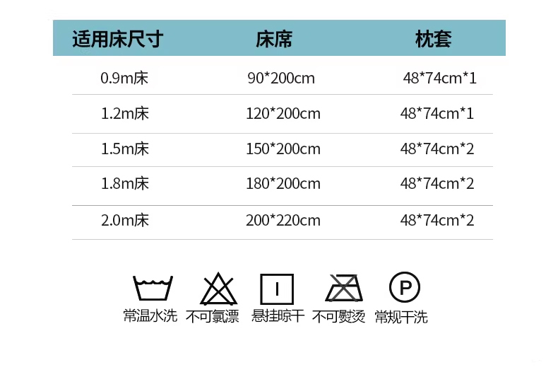 150x200cm单床笠+枕套一对 | ¥35.00 |