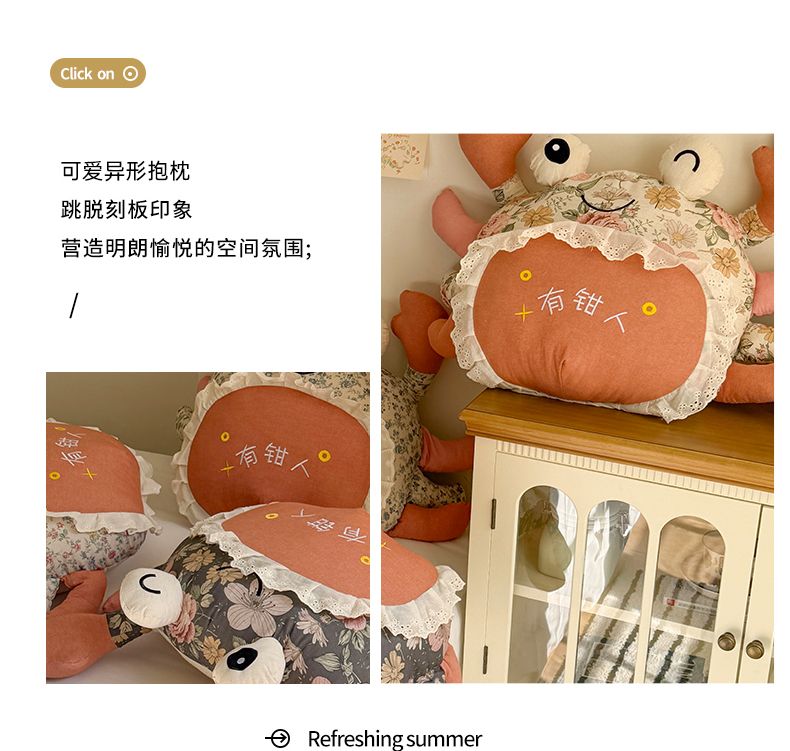 (总)蔻眠 有钳人-卡通棉麻刺绣抱枕靠枕异型枕芯