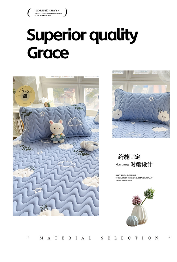(总)希廷顿 2026新款印花夹棉防水床垫学生款,小恐龙,梦幻森林,小煤球,太空人,luck熊,萌宠狗,马上暴富,草莓熊,星星犬,熊本熊,熊猫攀竹,云之恋