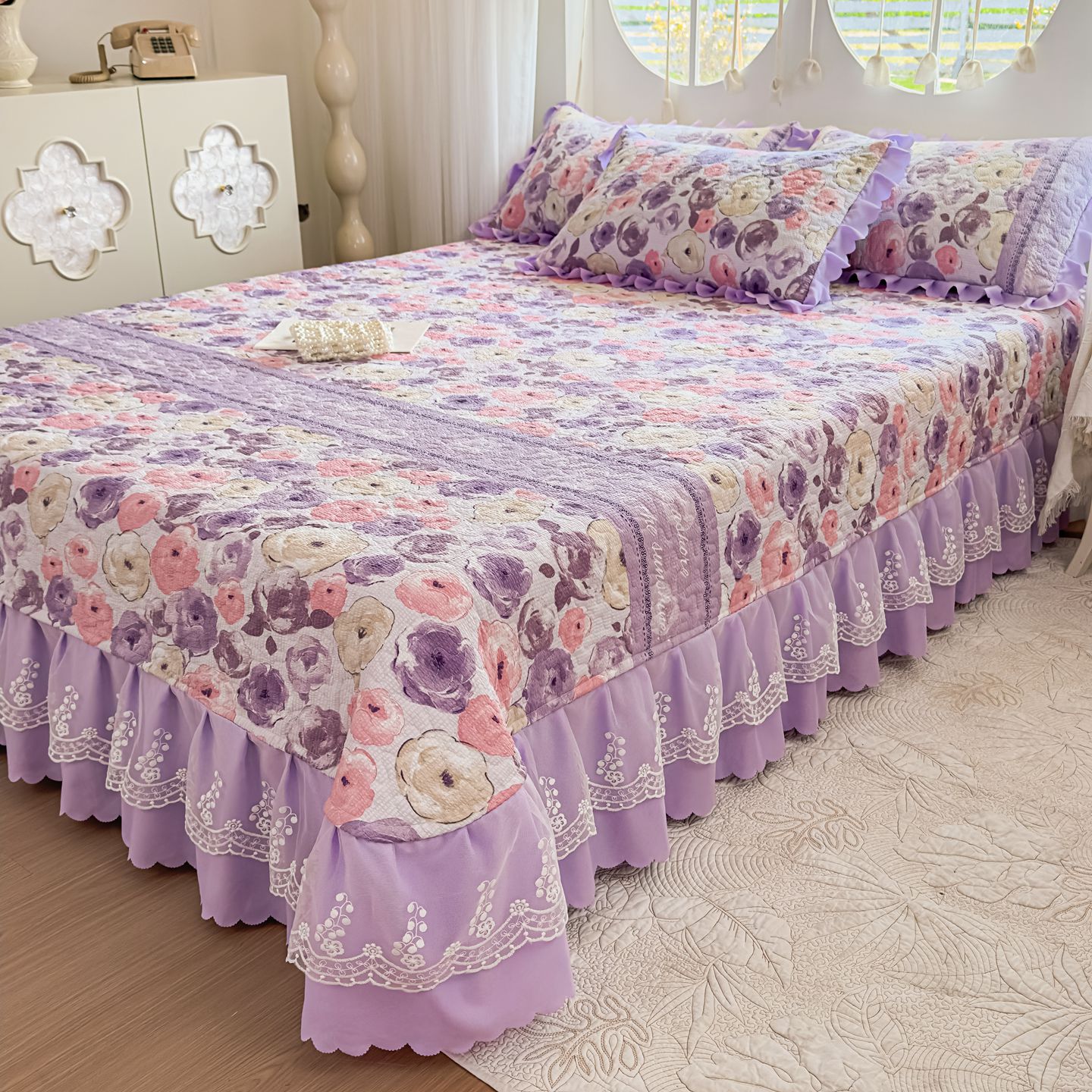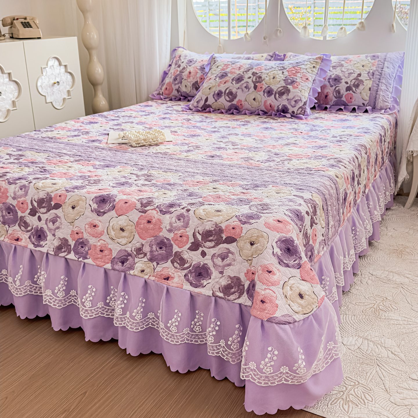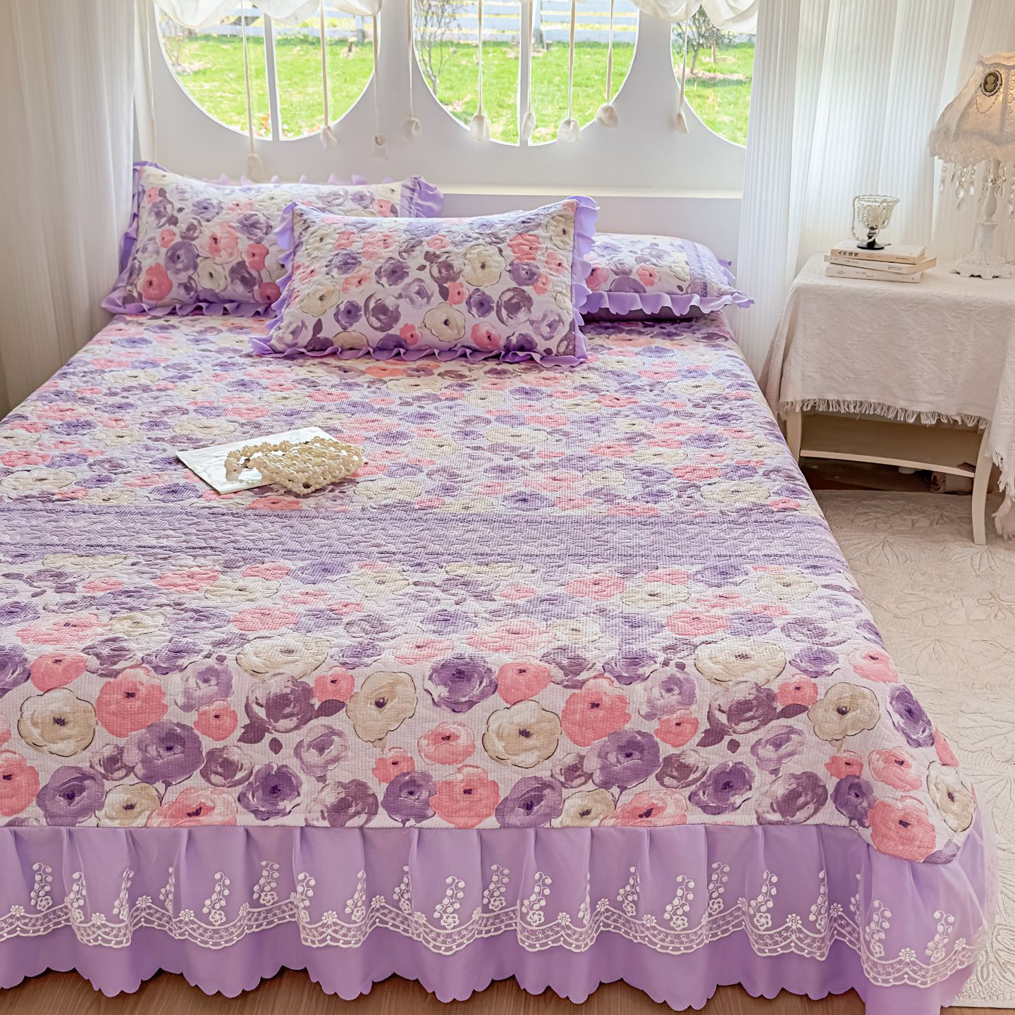 (总)雅眠居 2026新款直播爆款古法仿棉双层蕾丝花边床盖四件套,彩格-粉,诗意,秘境-紫,小福星,秘境-灰,紫萱,胭花集,小时光,彩格-蓝,彩格-灰,彩格-绿,花语,花满满,彩格-紫