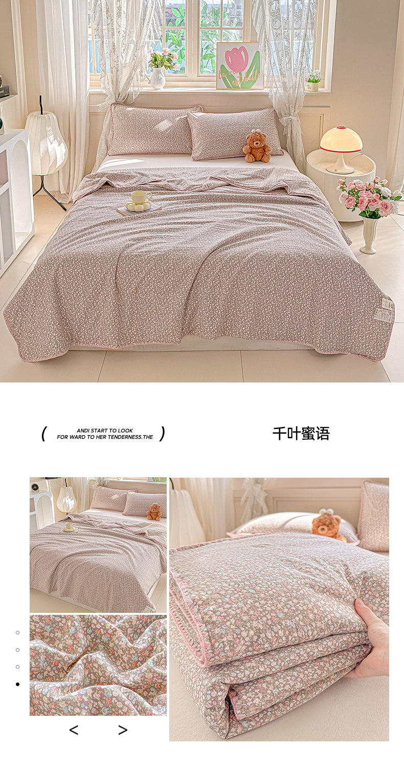 圣尔雅家纺 2026新款印花夏被小碎花贝壳绣皱皱棉夏凉被空调被 千叶蜜语