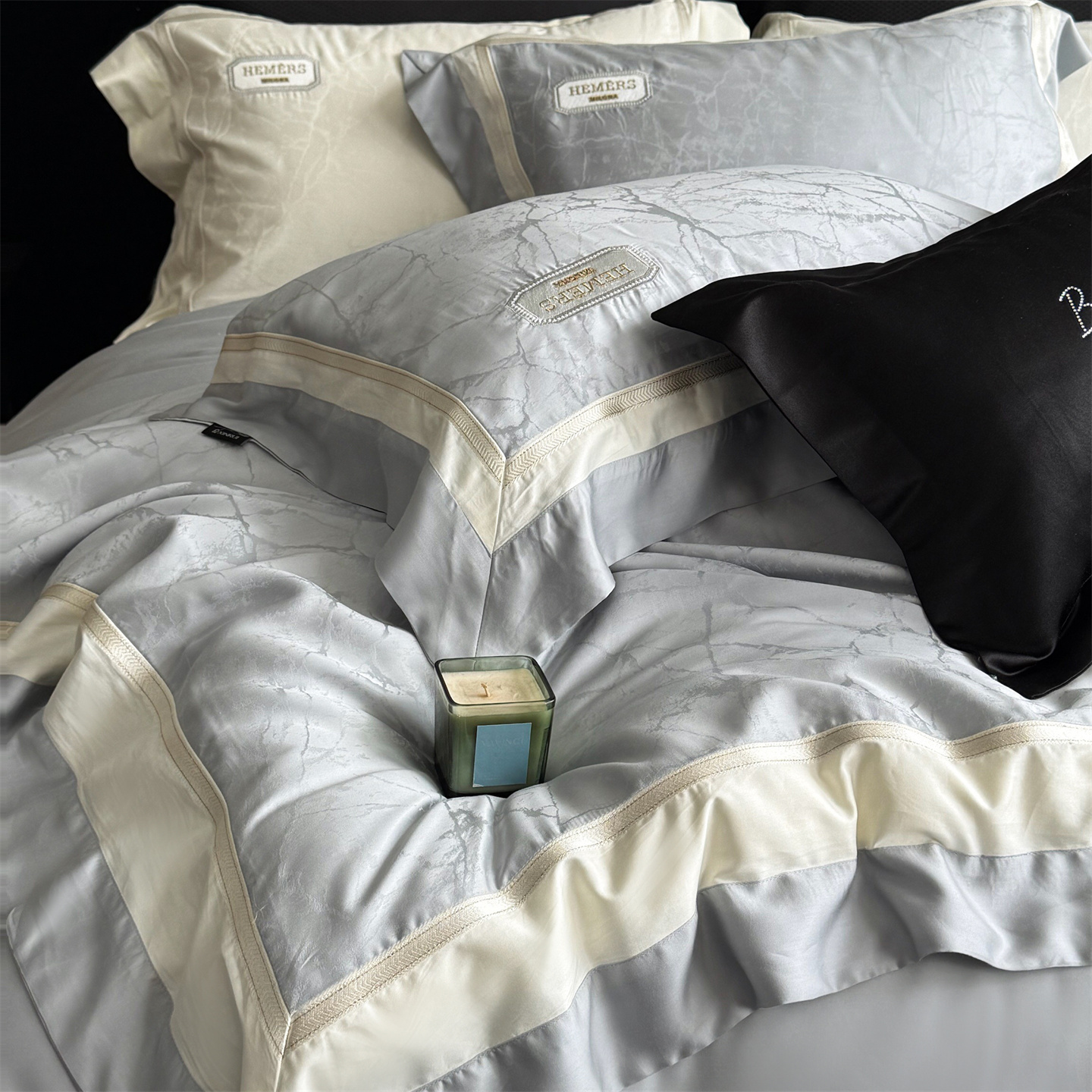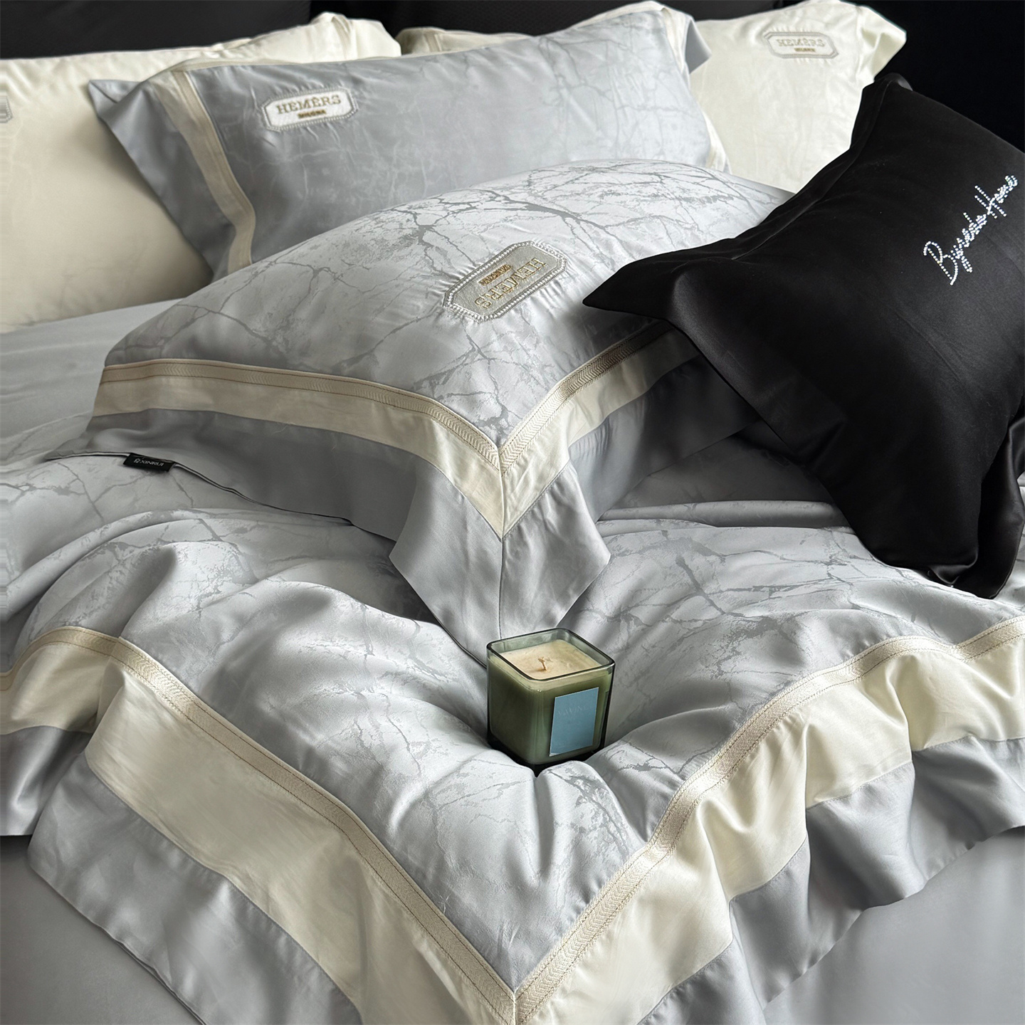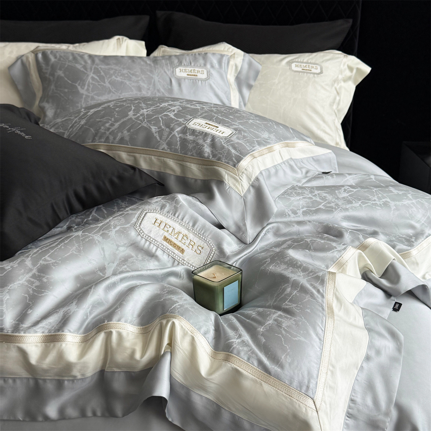 馨蕊家居 2026新款100s高定高精密刺绣全棉四件套-云瑾【淘宝 / 劵后控价:不低于 338/358】 云瑾-高级灰