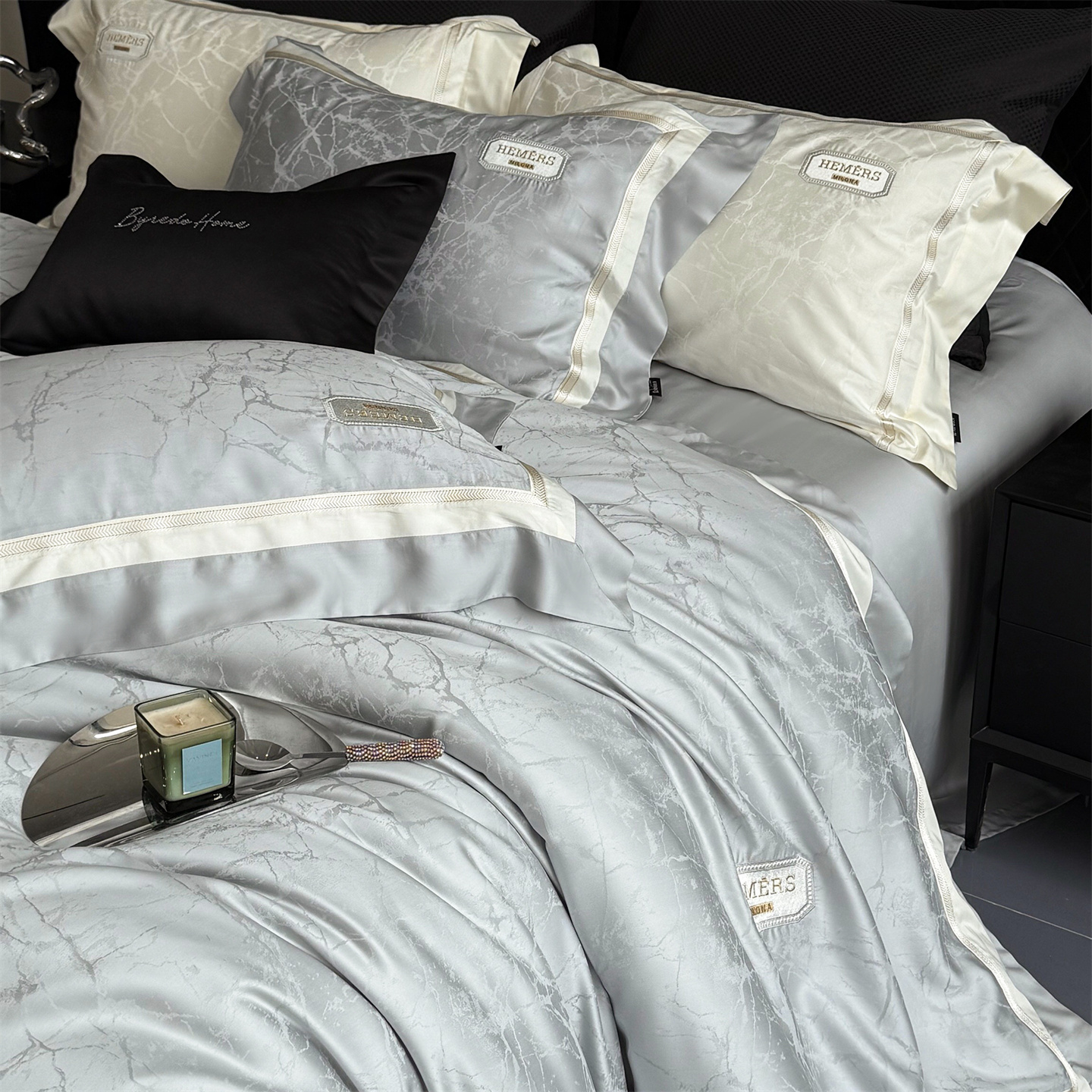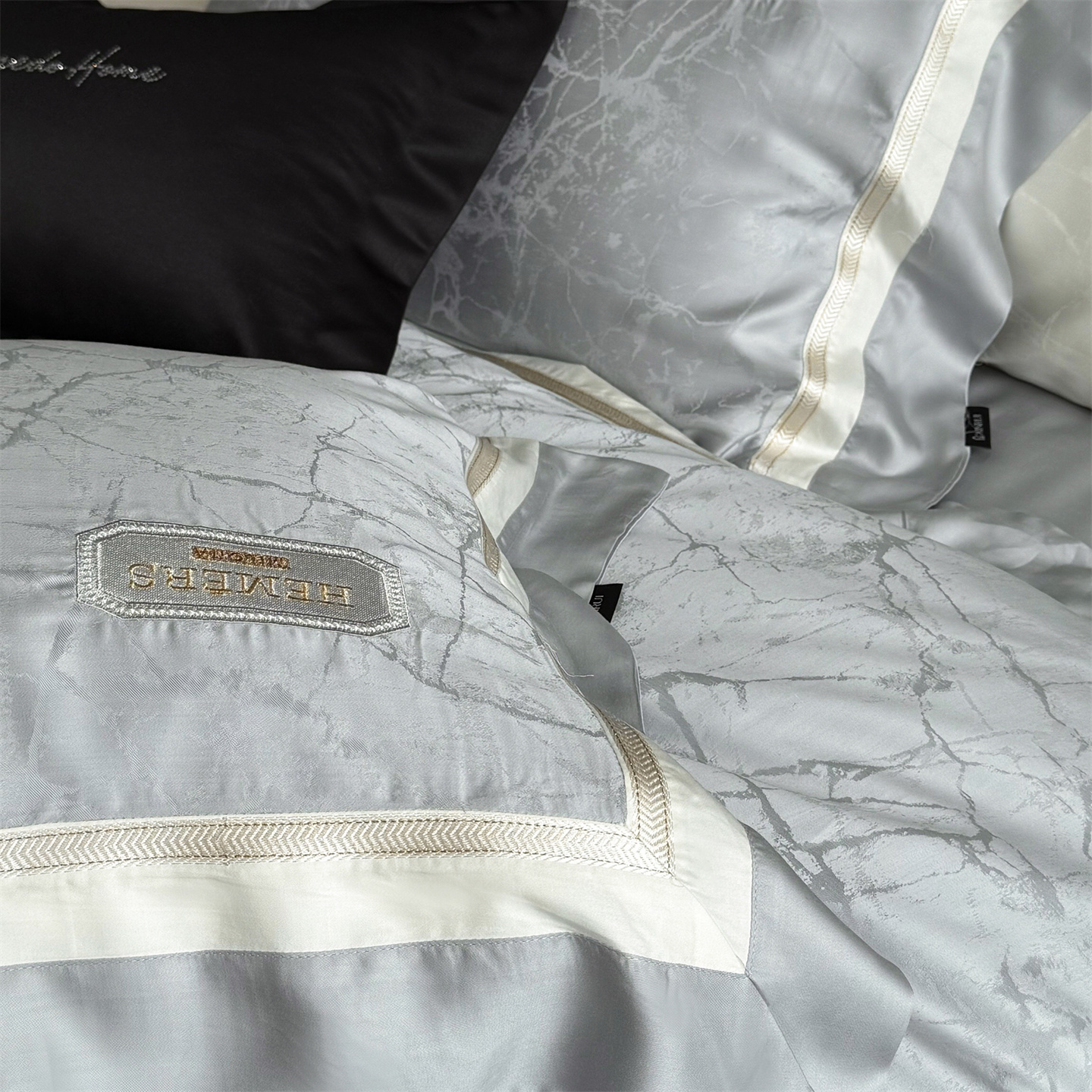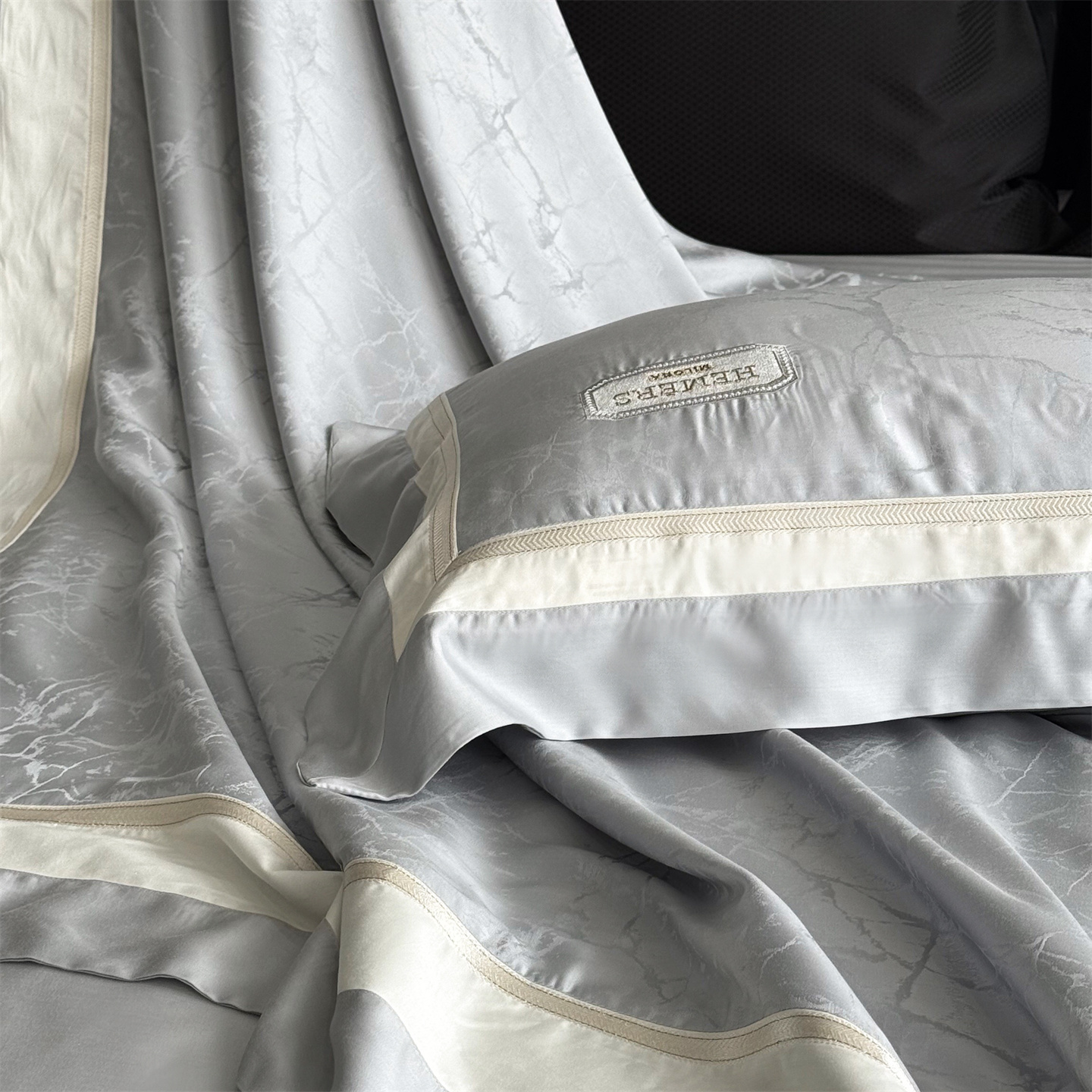 商品名称:馨蕊家居 2026新款100s高定高精密刺绣全棉四件套-云瑾【淘宝 / 劵后控价:不低于 338/358】 云瑾-高级灰