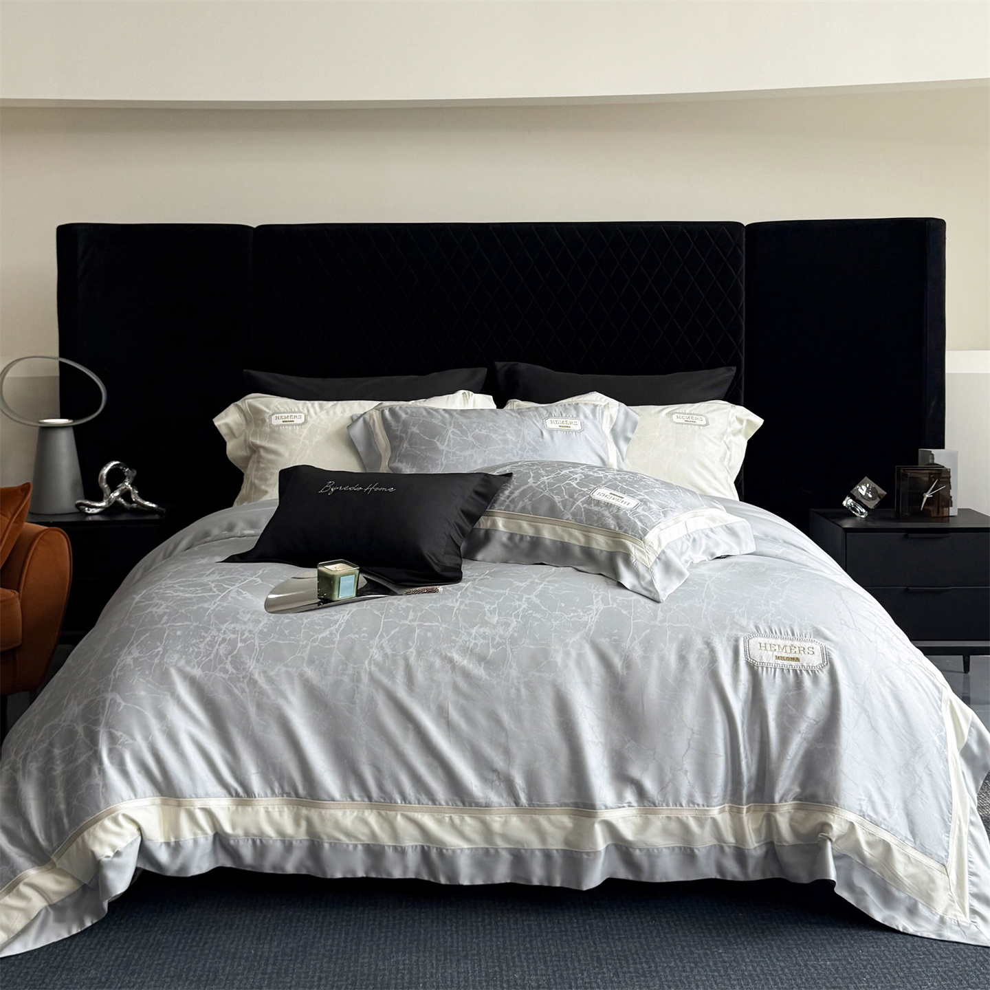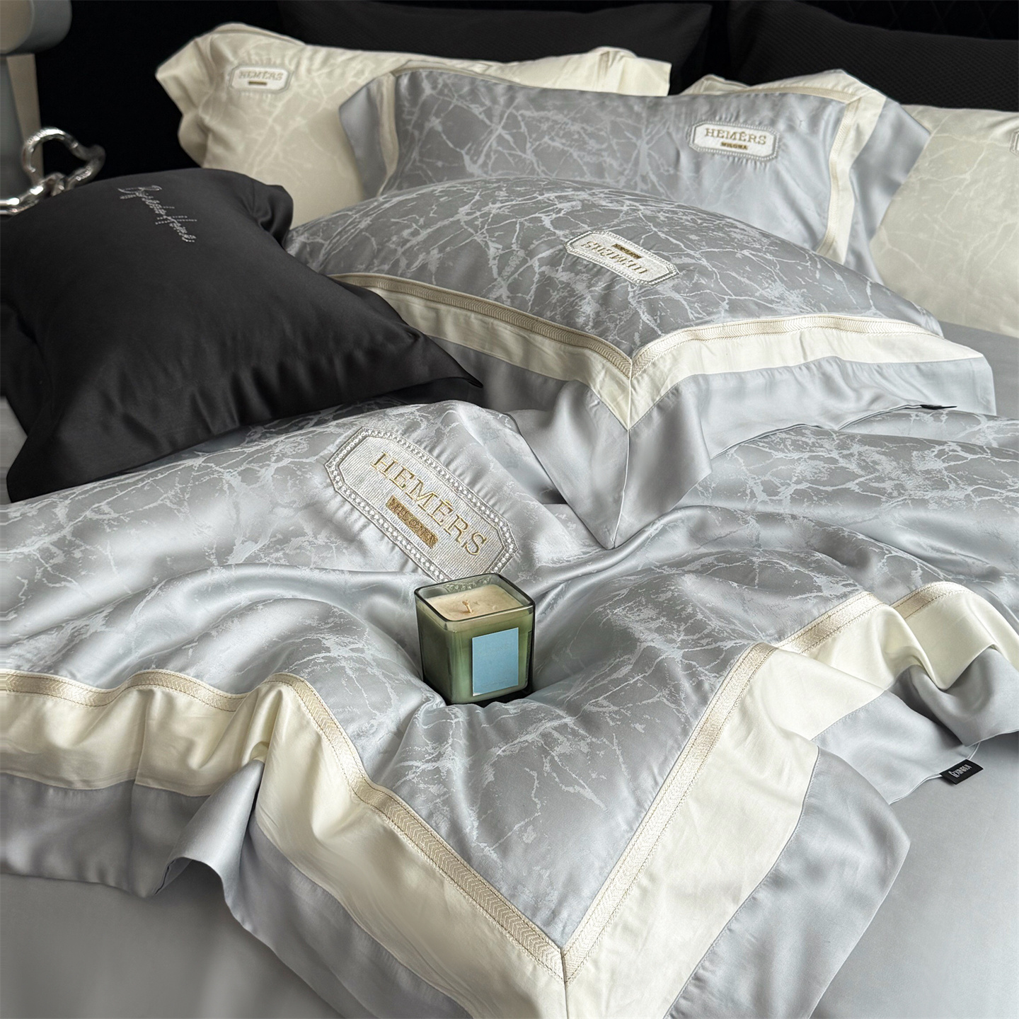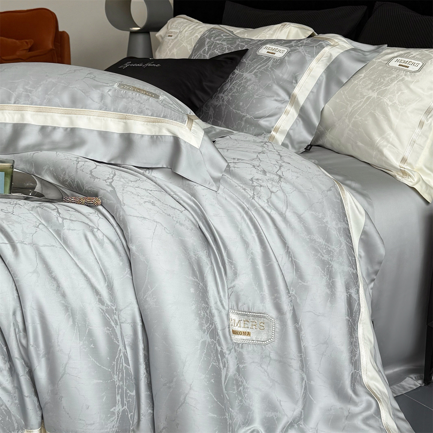 商品名称:馨蕊家居 2026新款100s高定高精密刺绣全棉四件套-云瑾【淘宝 / 劵后控价:不低于 338/358】 云瑾-高级灰