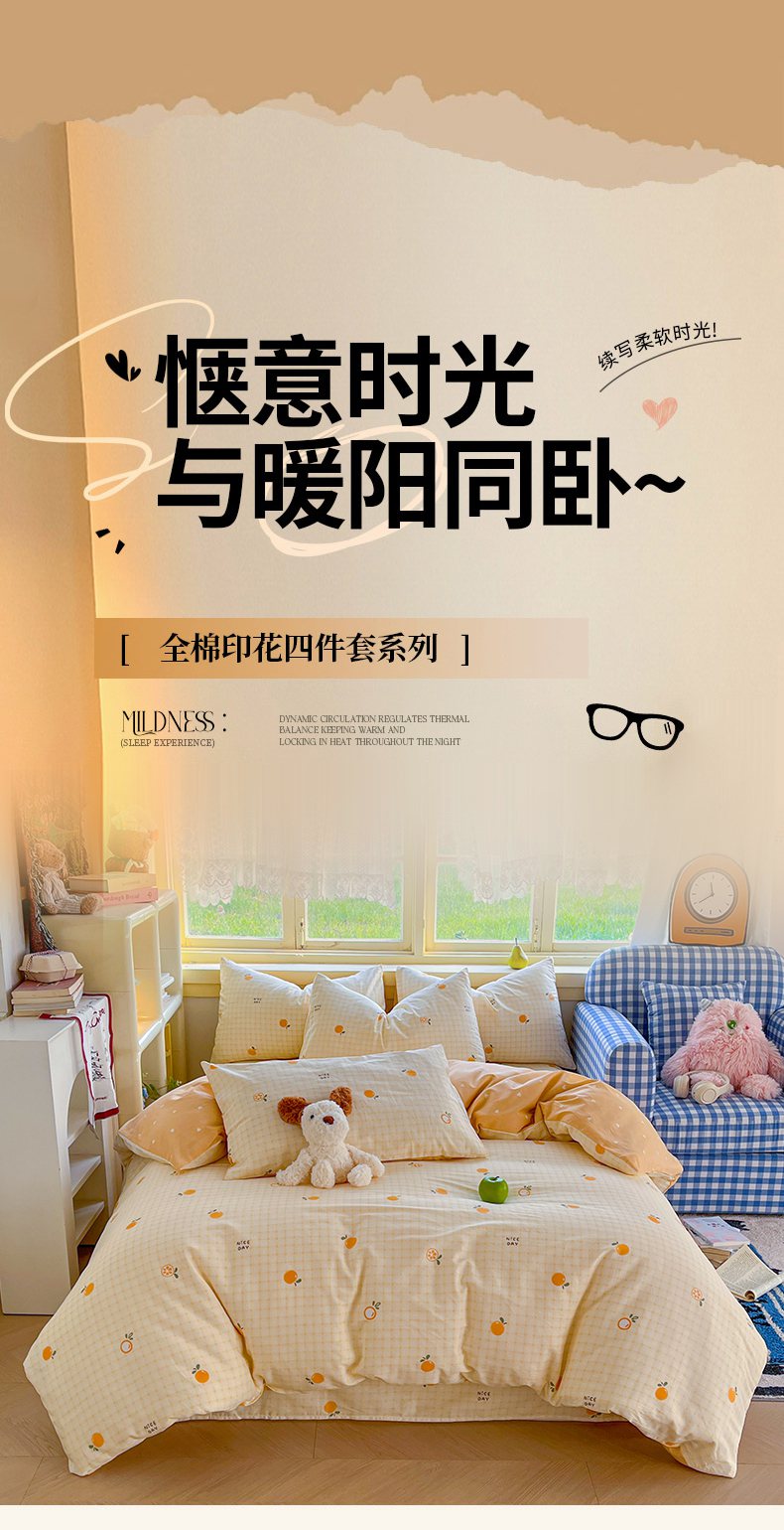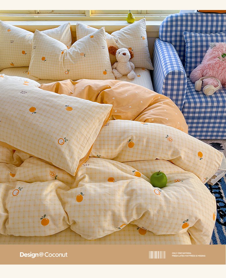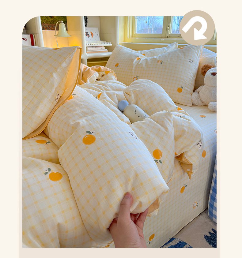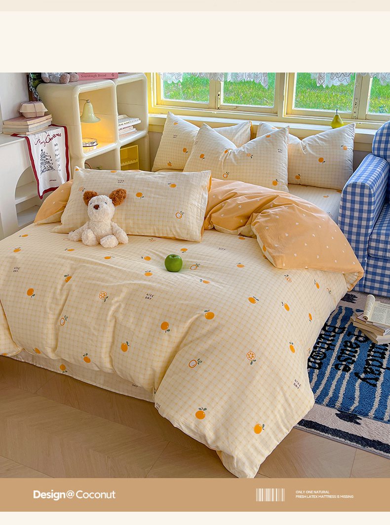 当前位置: 91家纺网 > 商品网购 > 床品套件 > 四件套 > 全棉普通四件套 > 简约家纺 2026新款全棉斜纹12868四件套系列 橘子格