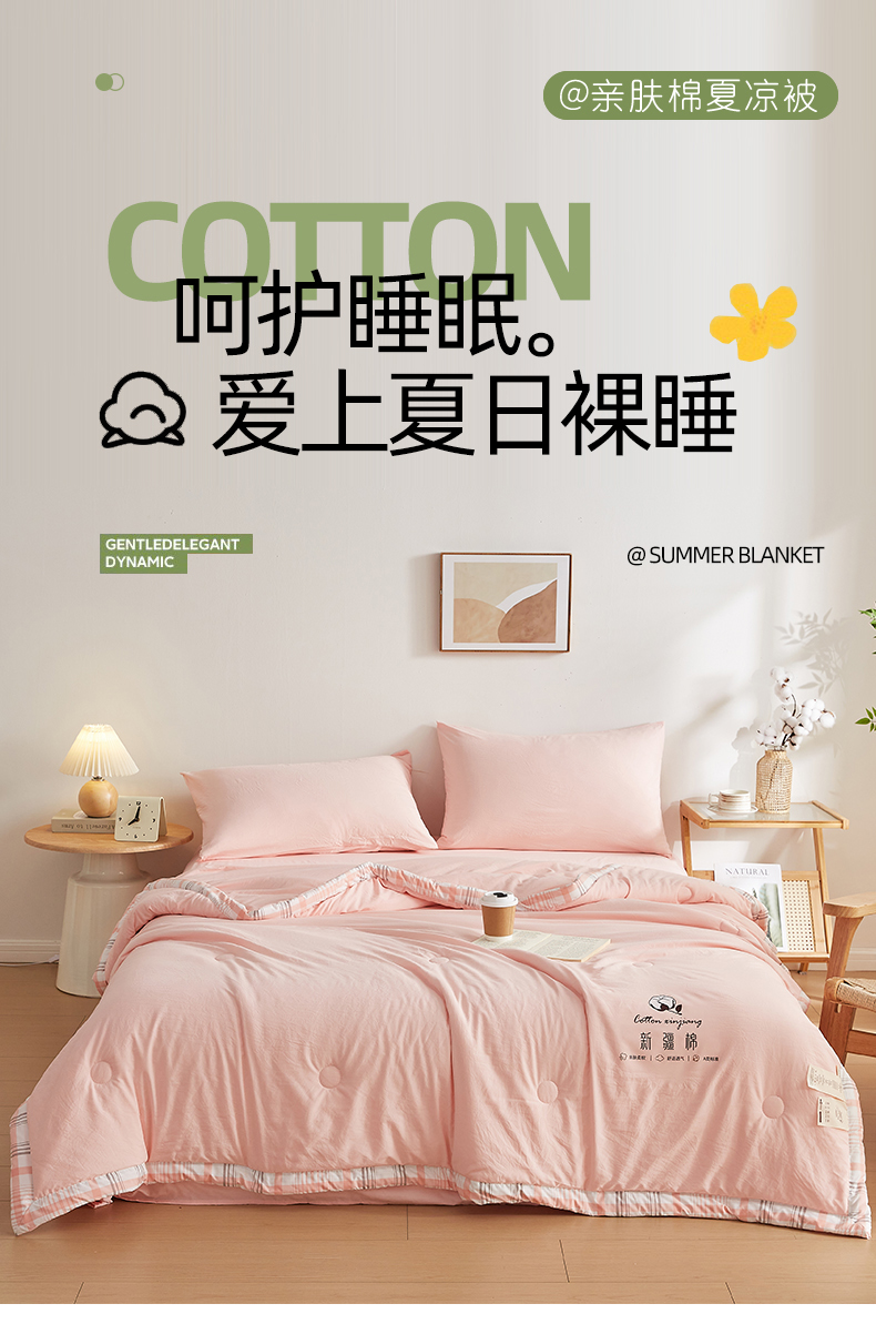 帕芬鸟家纺 2026新款100%棉花夏被纯色系列 蜜桃粉