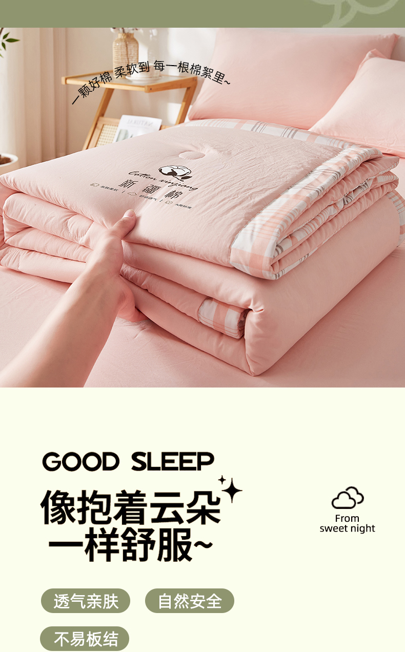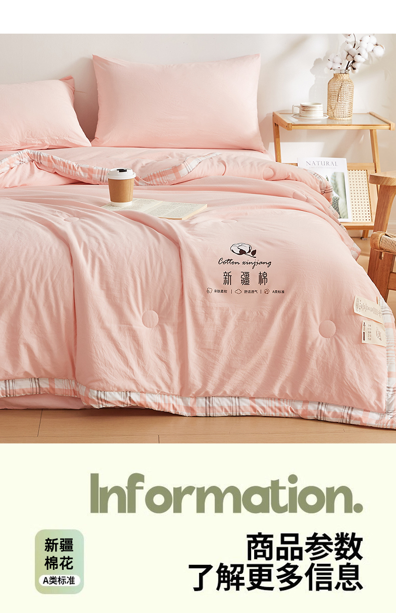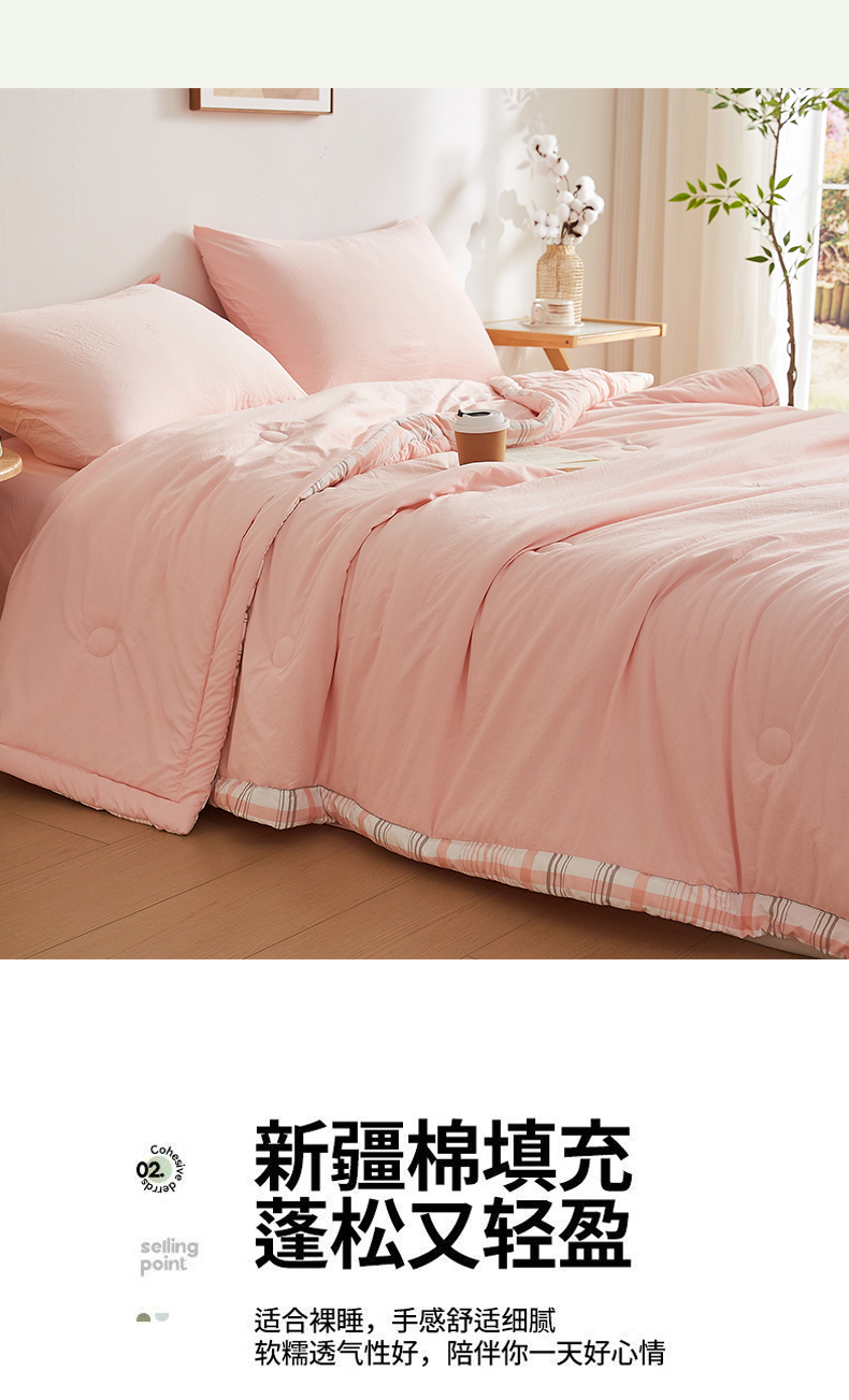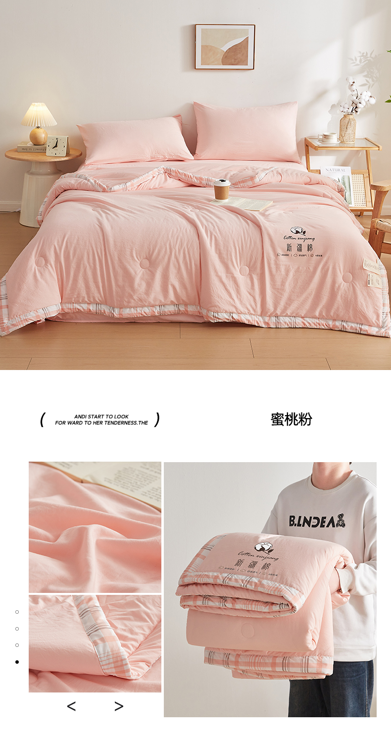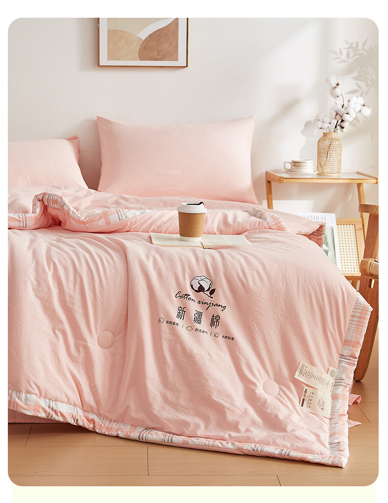 商品名称:帕芬鸟家纺 2026新款100%棉花夏被纯色系列 蜜桃粉