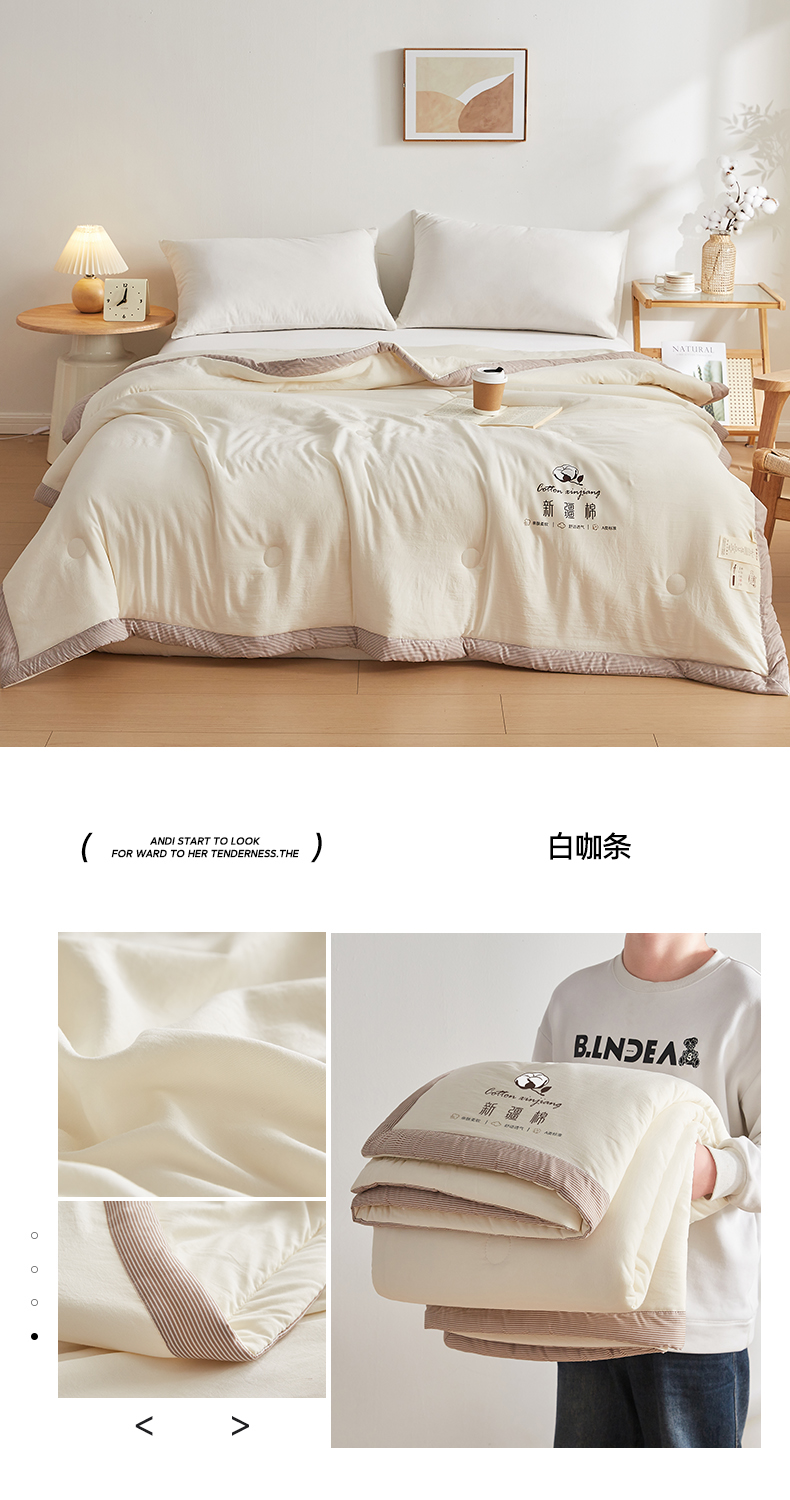 (总)帕芬鸟家纺 2025新款51%立体款棉花被 被子被芯,白咖条,灰卡条,卡其,美人玉,星空蓝