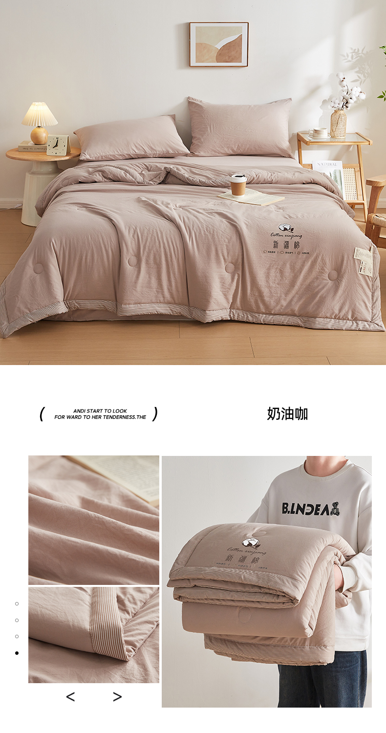 (总)帕芬鸟家纺 2026新款100%棉花夏被纯色系列,白咖条,宾利蓝,蜜桃粉,抹茶绿,奶油咖,月光灰