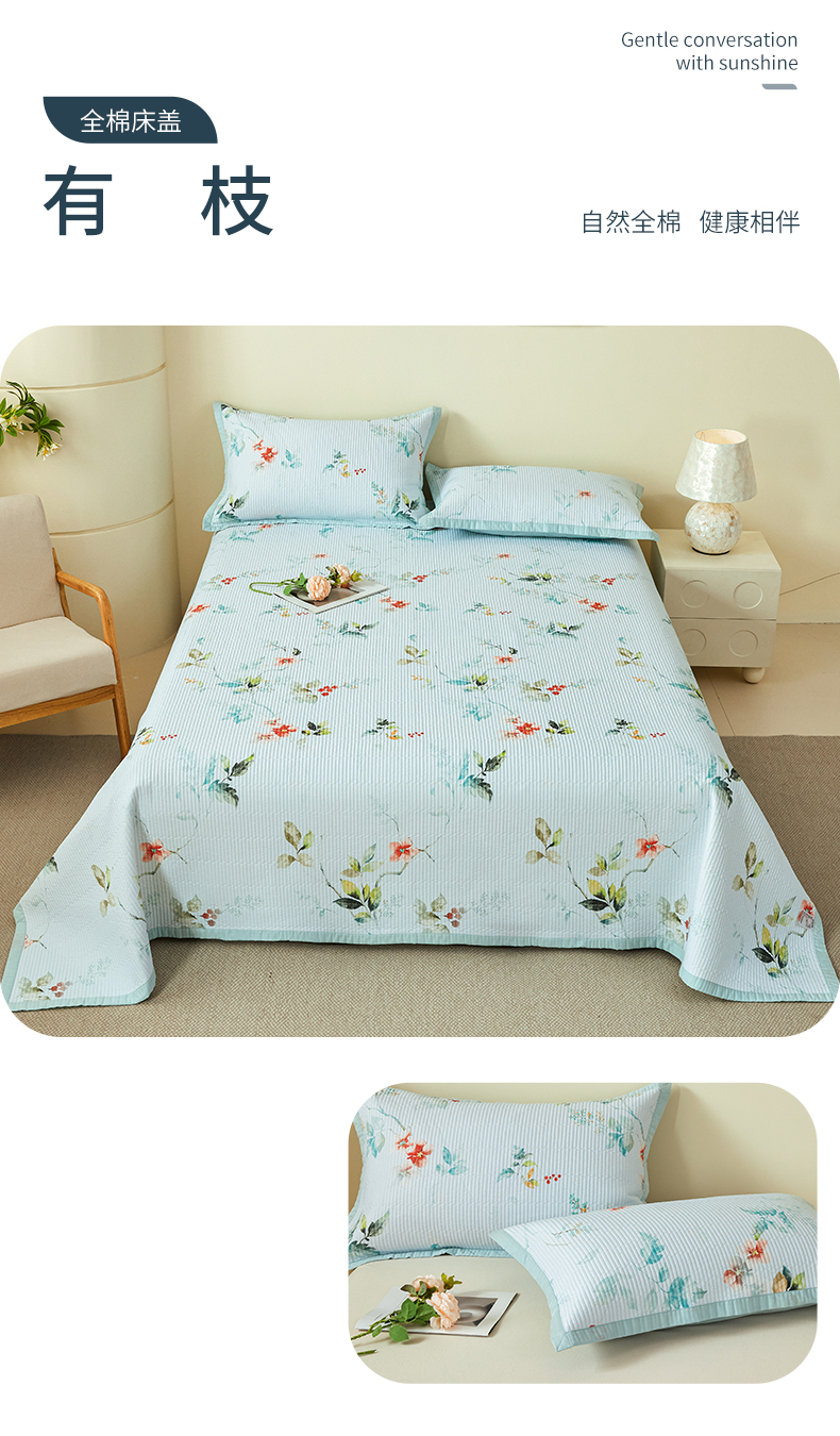 (总)元元家居(元元被业) 2026新款全棉纯棉13372系列床盖单件床盖单品单床盖-印花款,春晓绿,春晓米,芳菲,红颜,花漾绿,花漾紫,惊艳,乐园粉,乐园绿,凝珠,闪亮,思思,有枝,月棠,云樾,知夏