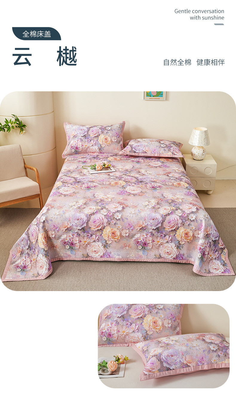 元元家居(元元被业) 2026新款全棉纯棉13372系列床盖单件床盖单品单床盖-印花款 思思