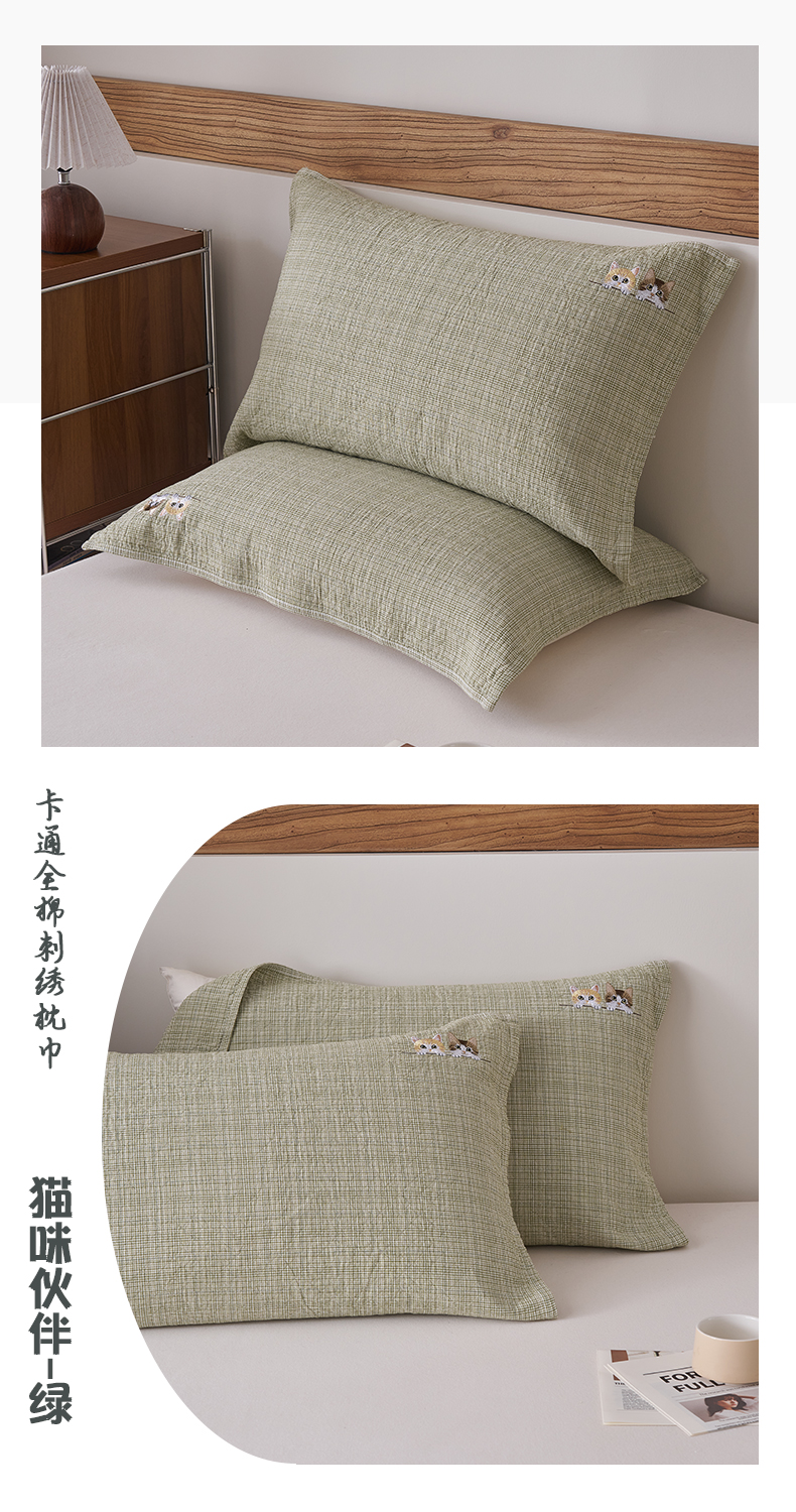 (总)百寐 2026百分百全棉A类色织枕巾52*75条纹格子美拉德色系纯棉吸汗枕巾风格二,色织 -米格,色织-红格,色织-蓝条,色织-绿格,色织-绿条,色织-浅绿格,色织-深咖格,色织-双拼绿格,色织-双拼米格,组合图(仅供展示不可下单)