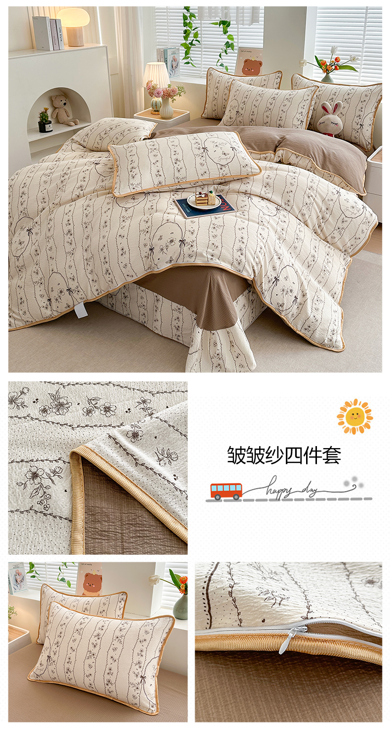 (总)爱洛家纺 2026新款印花皱皱纱四件套,粉黛草影,焦糖奶犬,咖调心韵,咖调星絮,林间粉玫,莫奈青园,墨蓝星絮,墨棕影花,奶糖花小兔,暖棕枝雪,青粉漫野,青岚细叶,清溪落英,秋栗拾光,深野碎樱,素低彩语,雾灰蝶语,雾灰小爱心,雾灰樱落,雾蓝结语,雾蓝青序,雾蓝水波纹,云间蓝雾草,云绒格间,云隙青叶,云紫轻花,紫雾星花,棕痕谍影,素墨蝶舞