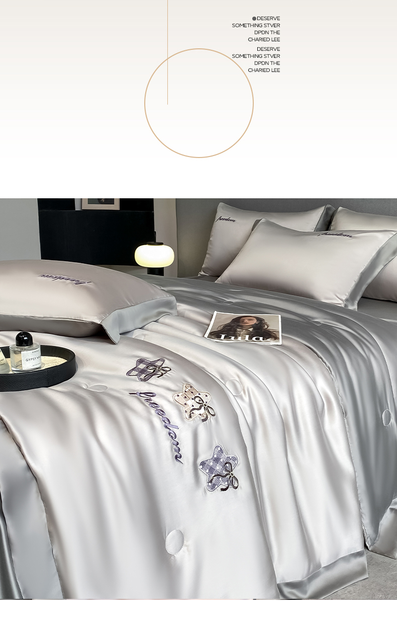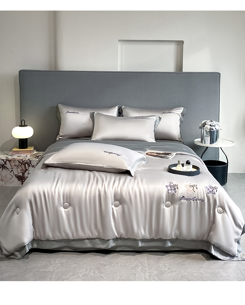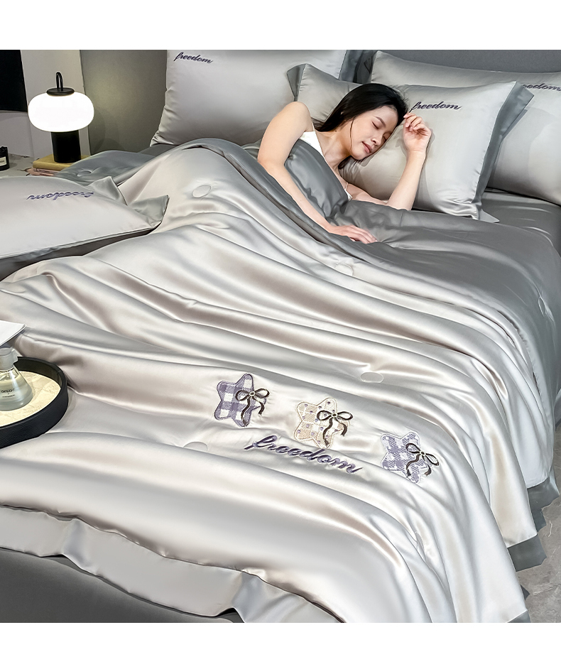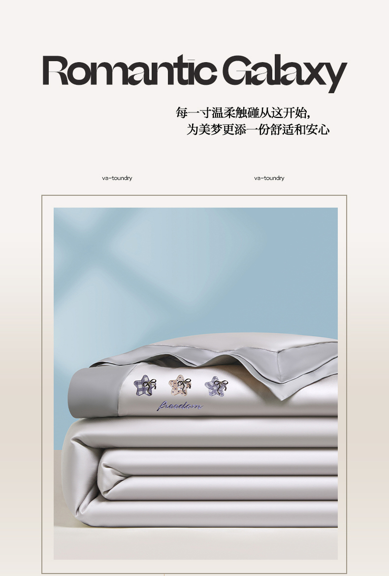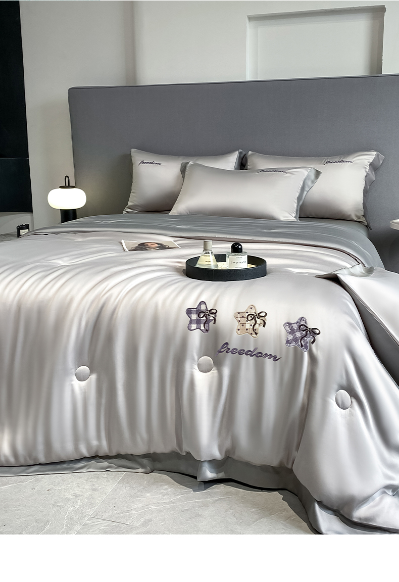 当前位置: 91家纺网 > 商品网购 > 床品套件 > 四件套 > 夏被四件套 > 云棉坊 2026新款水洗冰丝夏被宽边刺绣款-星空系列 星空-山灰+中灰