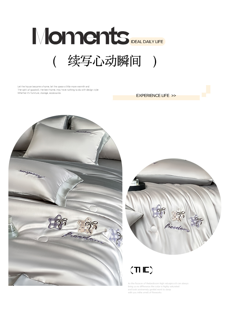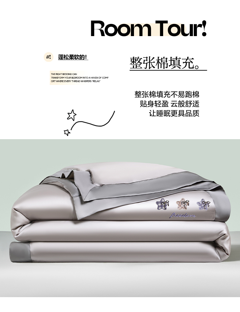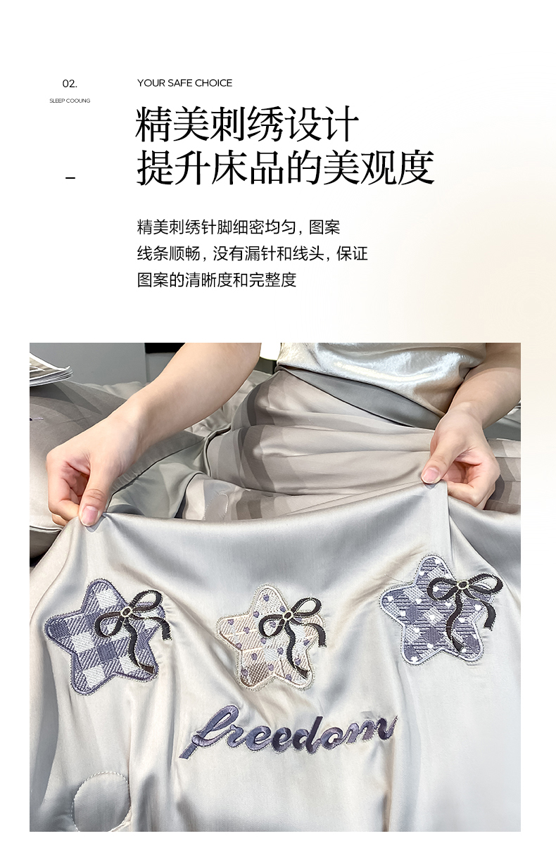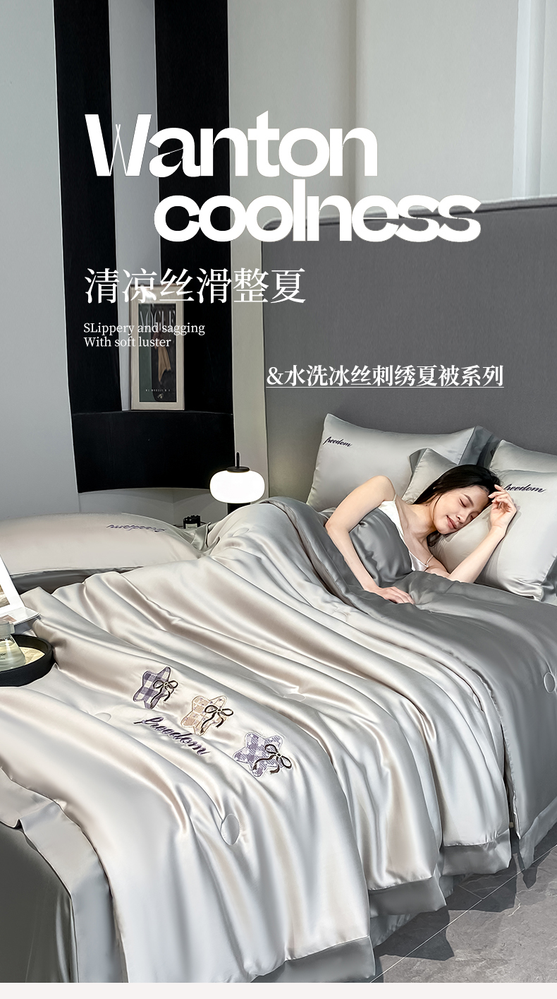当前位置: 91家纺网 > 商品网购 > 床品套件 > 四件套 > 夏被四件套 > 云棉坊 2026新款水洗冰丝夏被宽边刺绣款-星空系列 星空-山灰+中灰