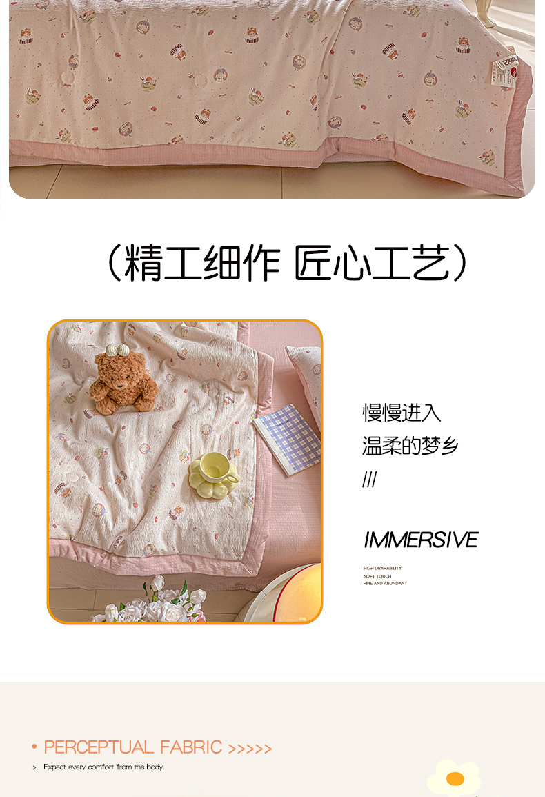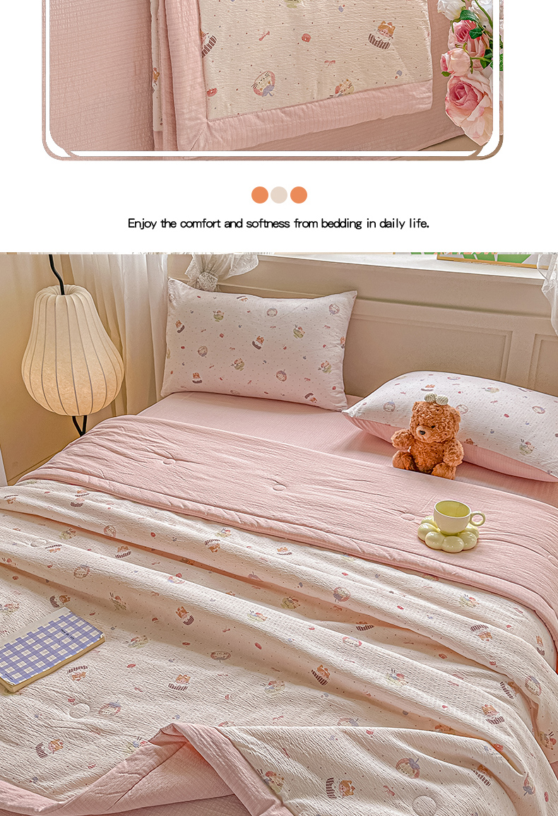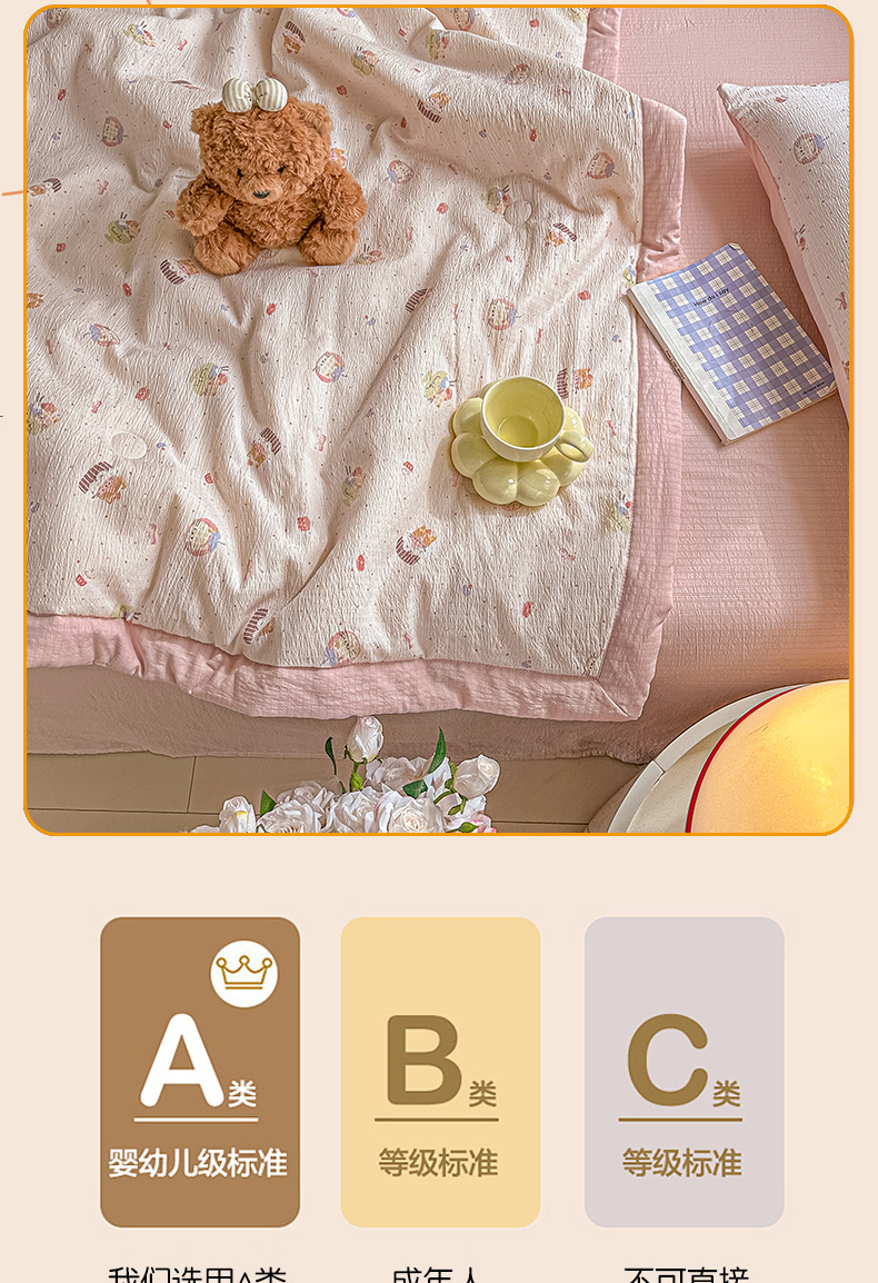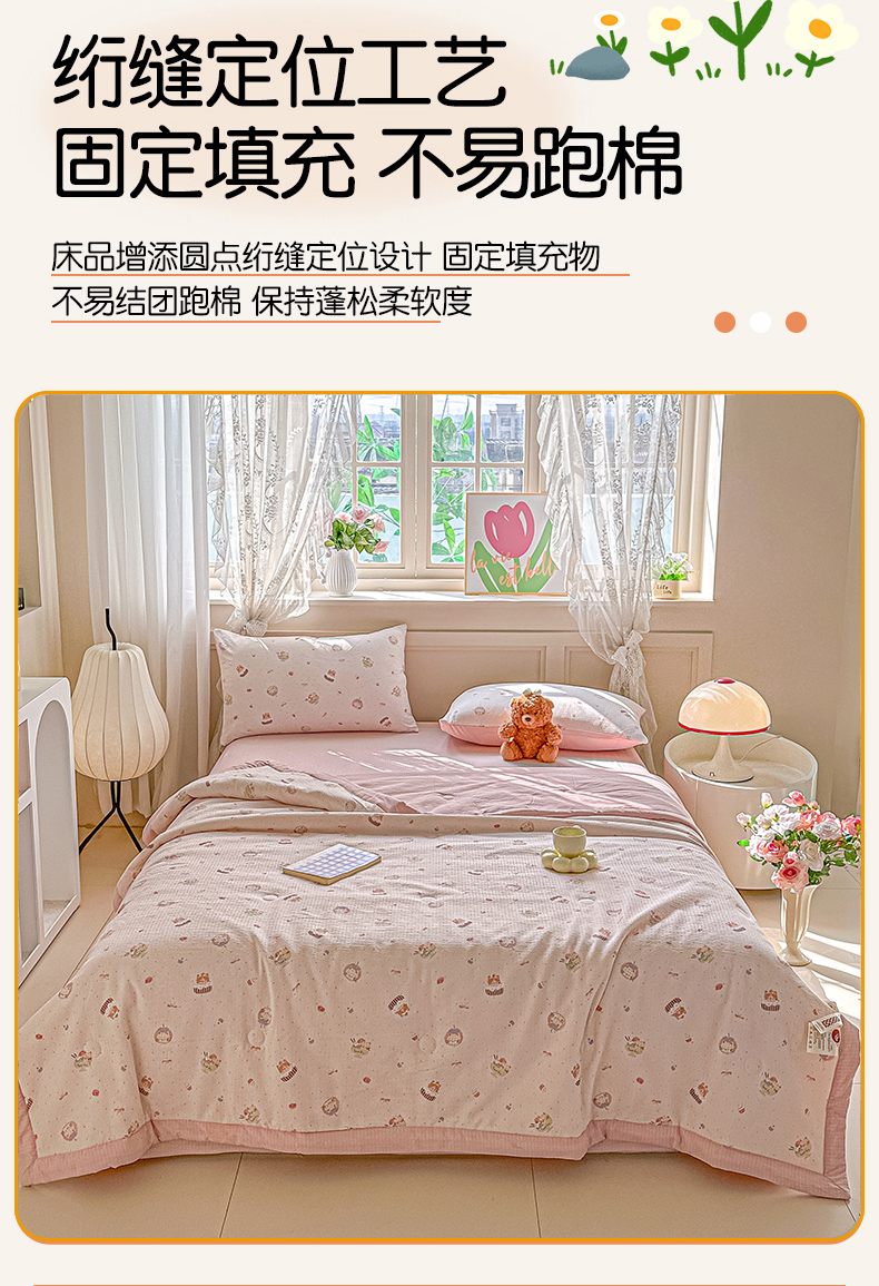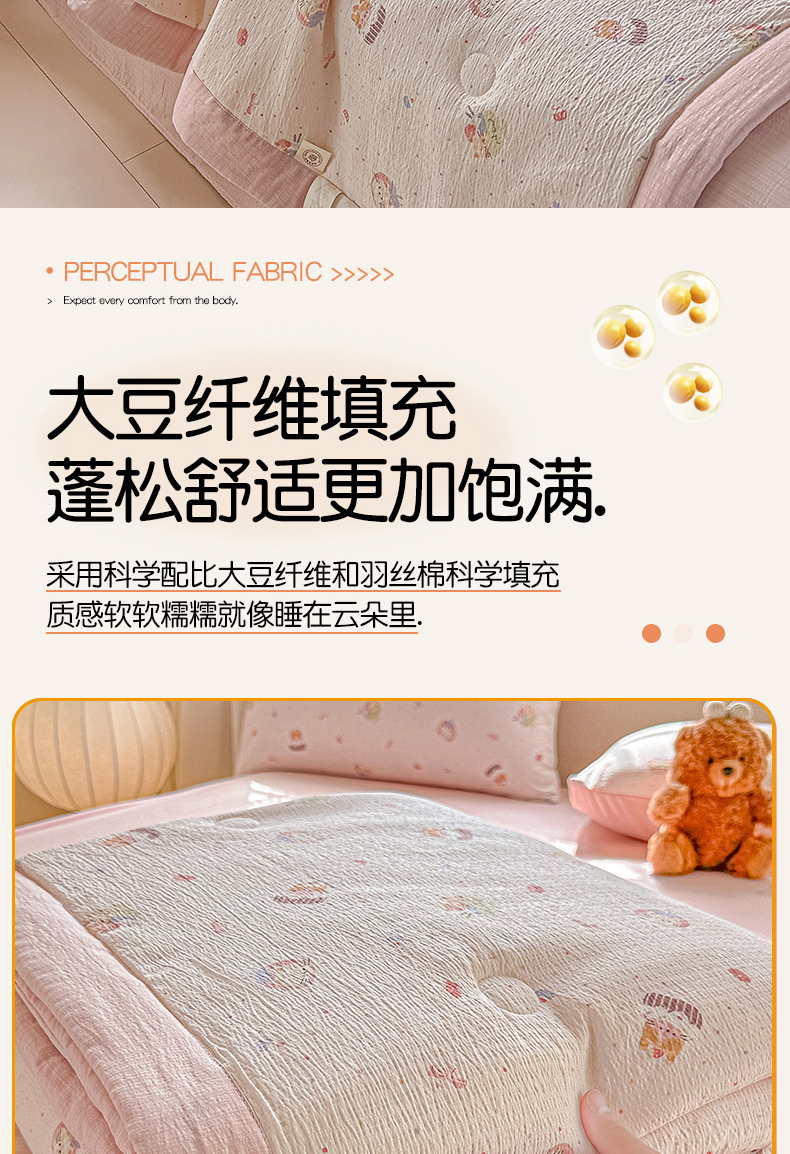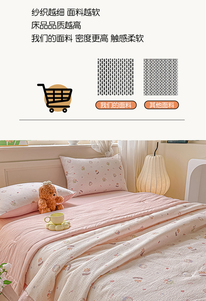 商品名称:秋泽家纺 2026新款A类云感双层纱大豆纤维夏凉被空调被小清新印花夏被 奶糯粉喵