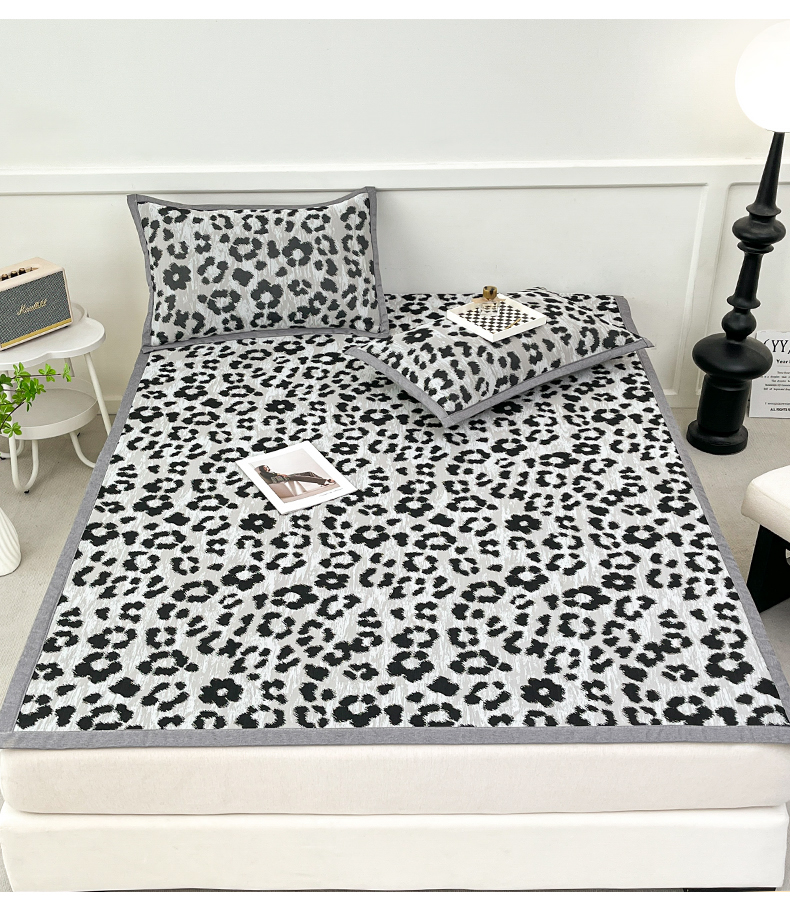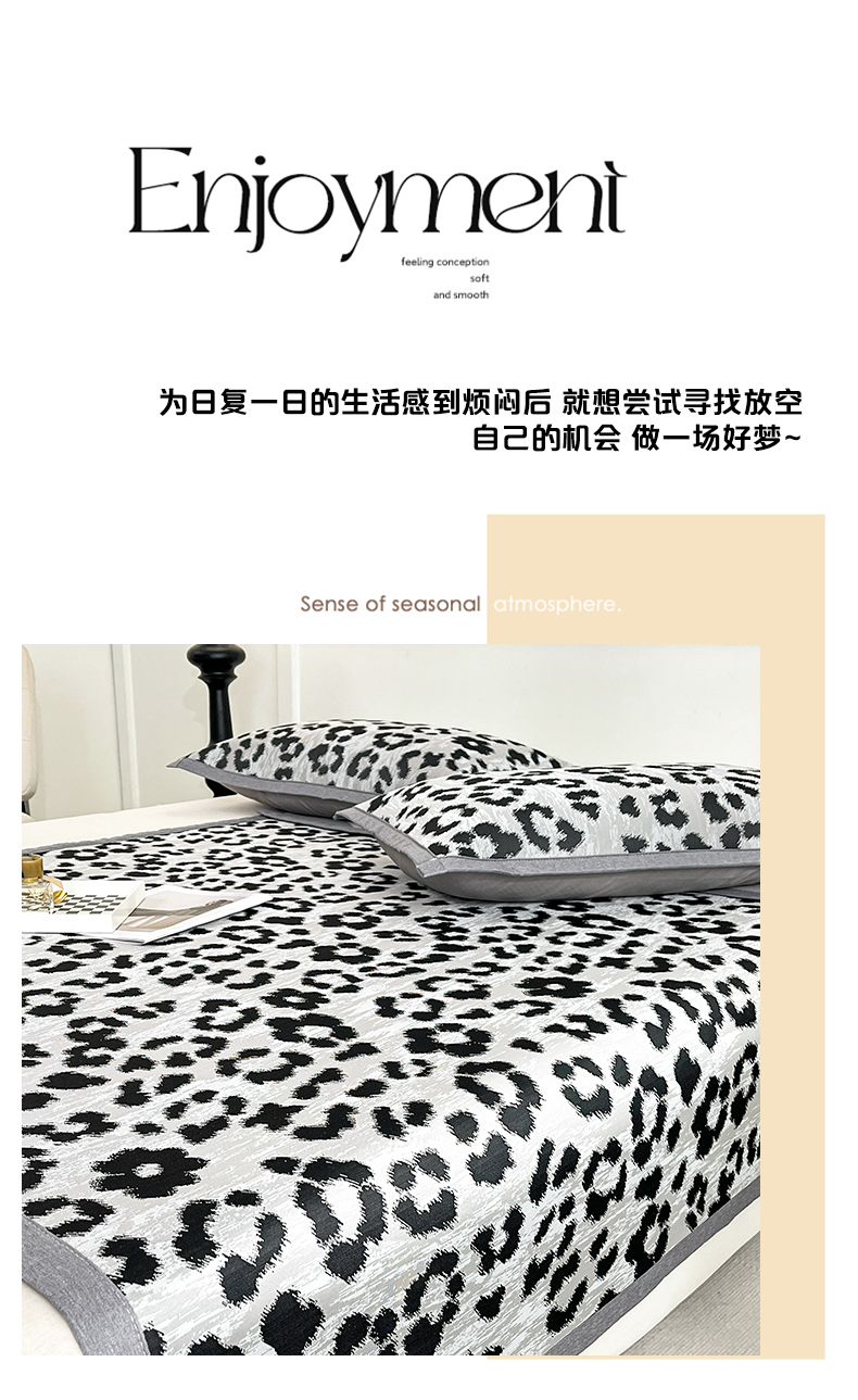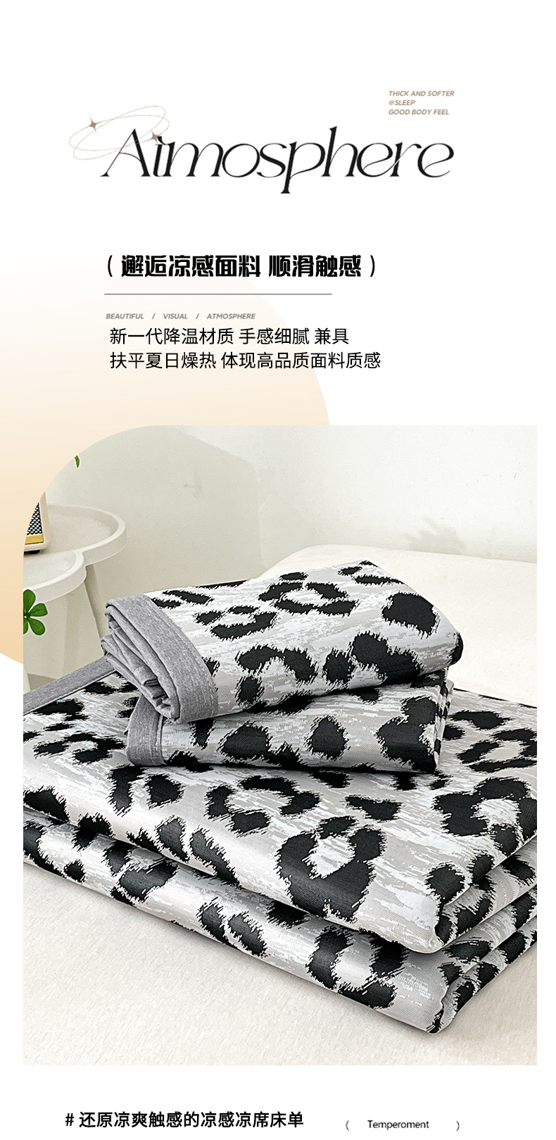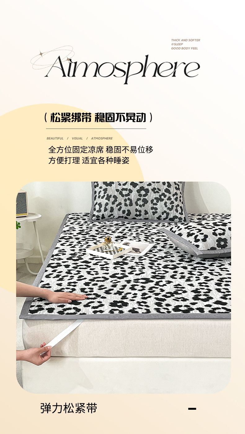商品名称:子曰 2026新款高分子PE聚乙烯乙纶色织提花凉感软凉席席子 豹纹-灰平铺款