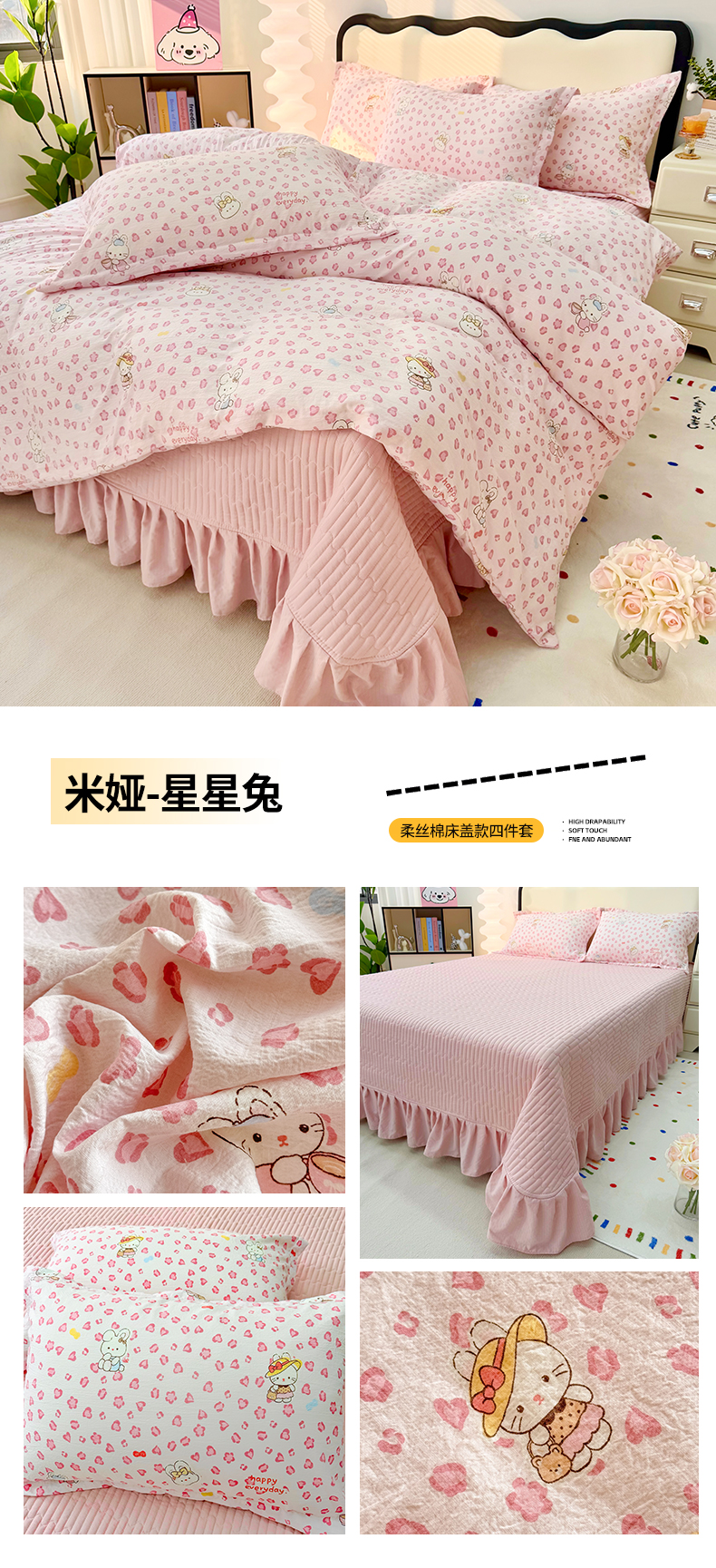 当前位置: 91家纺网 > 商品网购 > 床品套件 > 四件套 > 其它四件套 > 九诺家纺 2026新款丝柔棉皱皱纱花边床盖四件套 米娅-紫薇花