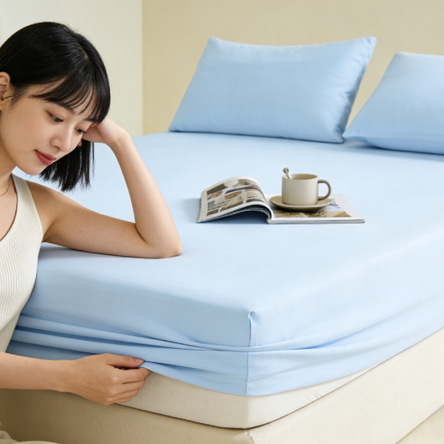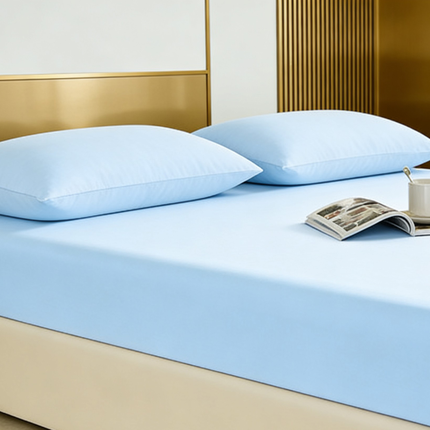 (总)LADYCOCO可可家居 2026新款锦纶凉感床笠三件套,浅灰,浅蓝