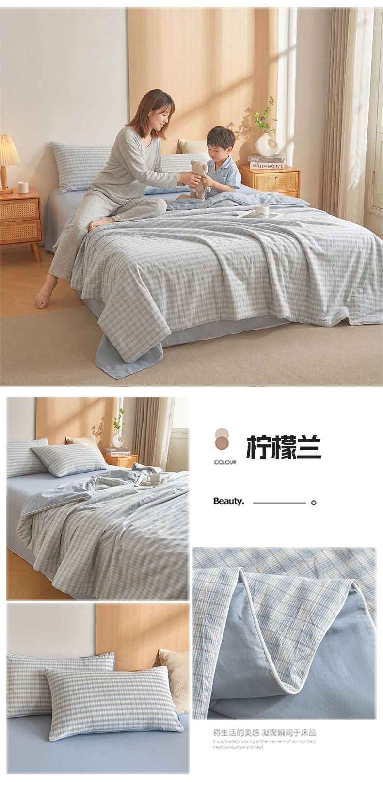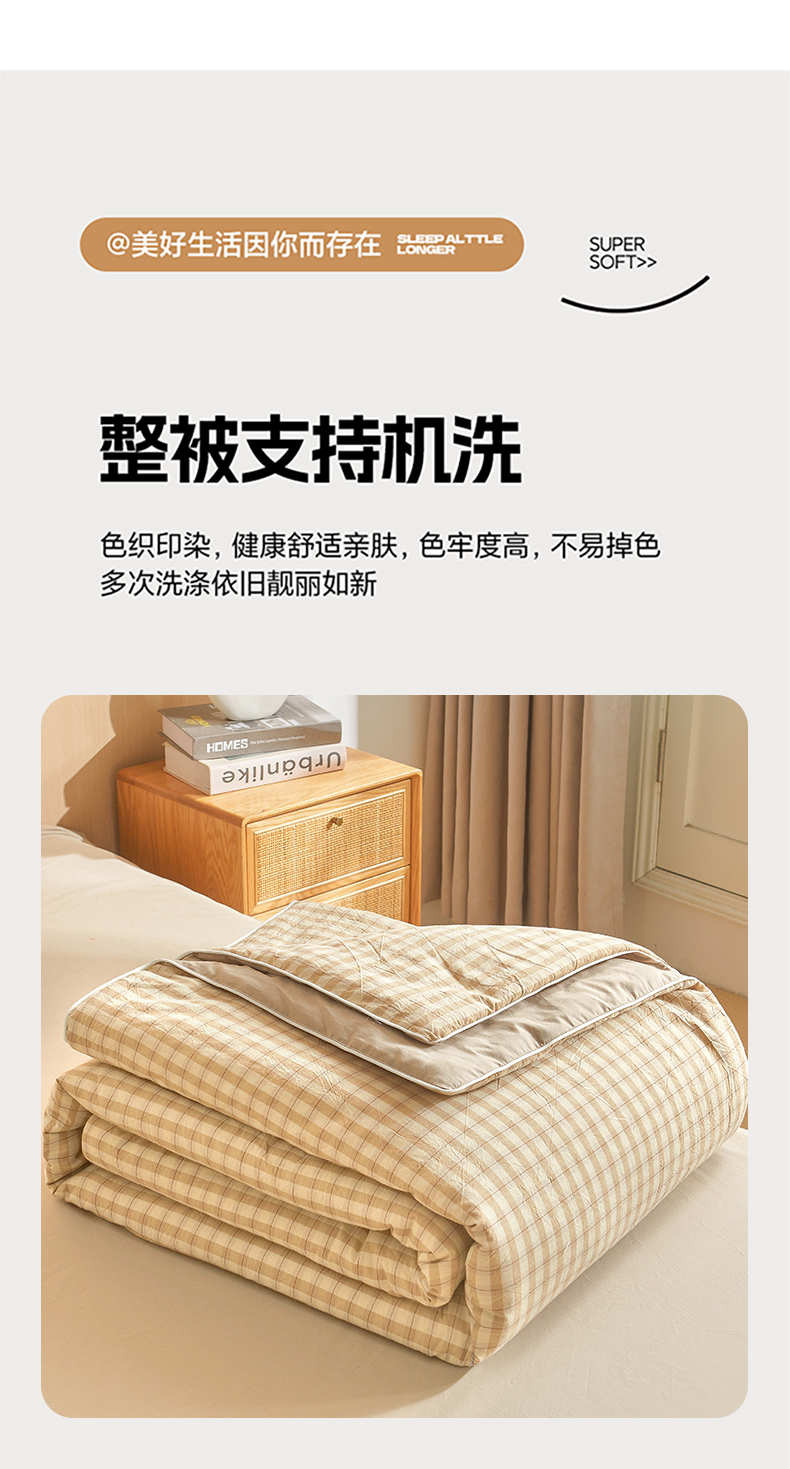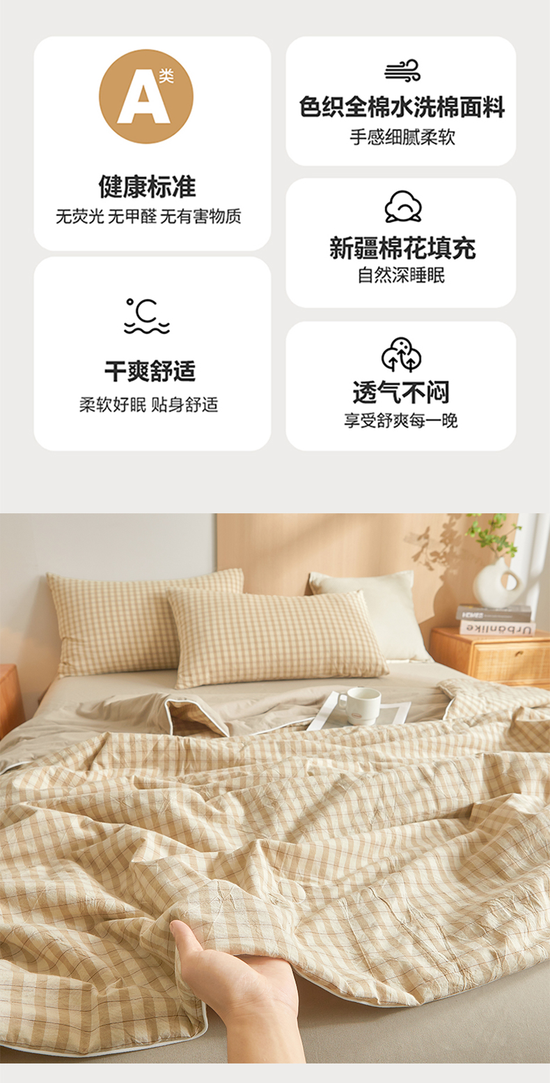 (总)金喜 2026新款A类全棉色织水洗棉夏被夏凉被,低调米,朵拉咖,琥珀粉,焕花灰,柠檬粉,柠檬兰