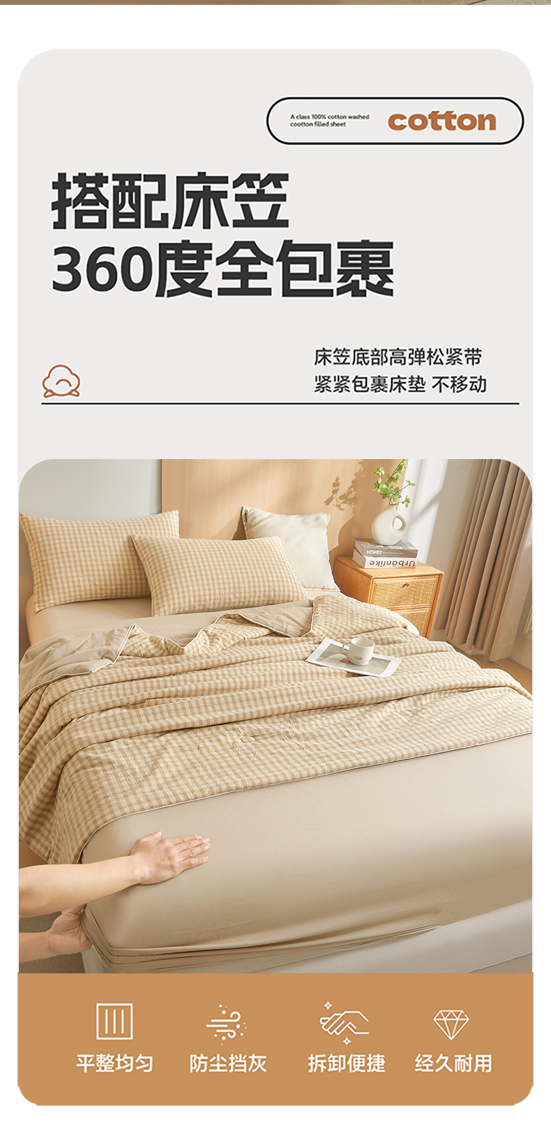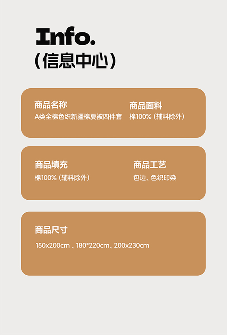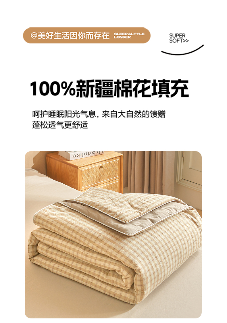 商品名称:金喜 2026新款A类全棉色织新疆棉夏被四件套 朵拉咖