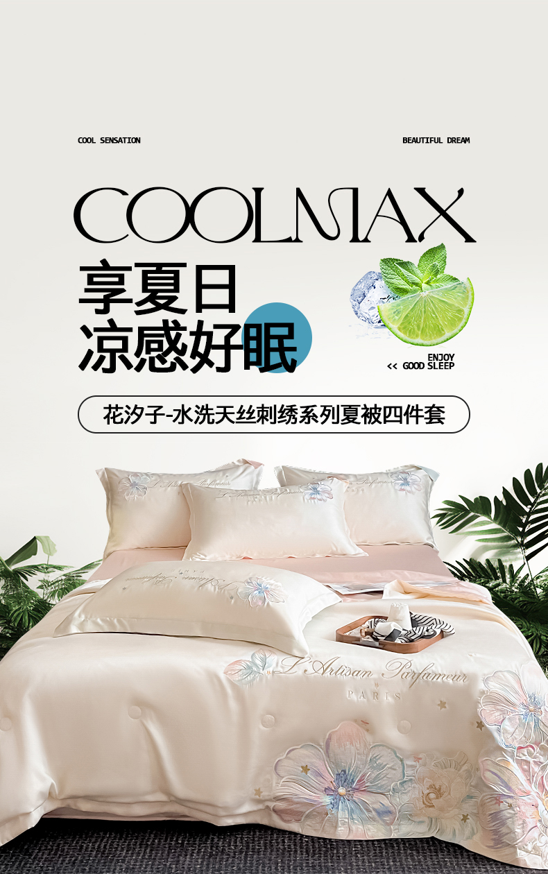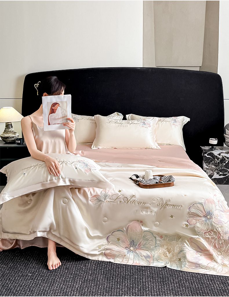当前位置: 91家纺网 > 商品网购 > 床品套件 > 四件套 > 夏被四件套 > 置顶家纺 2026新款水洗天丝夏被四件套-花汐子 花汐子-白+粉
