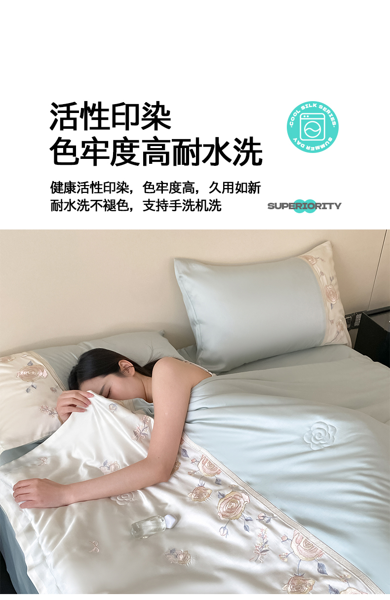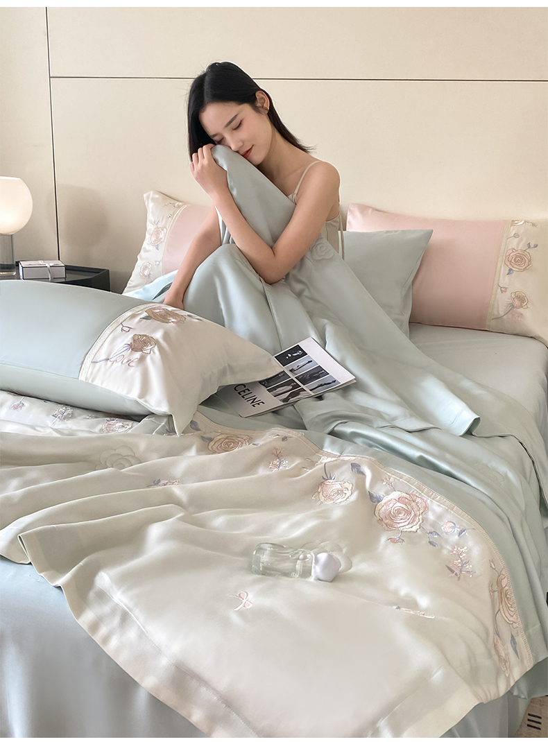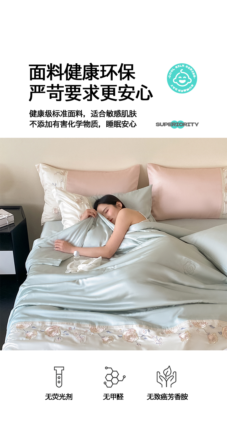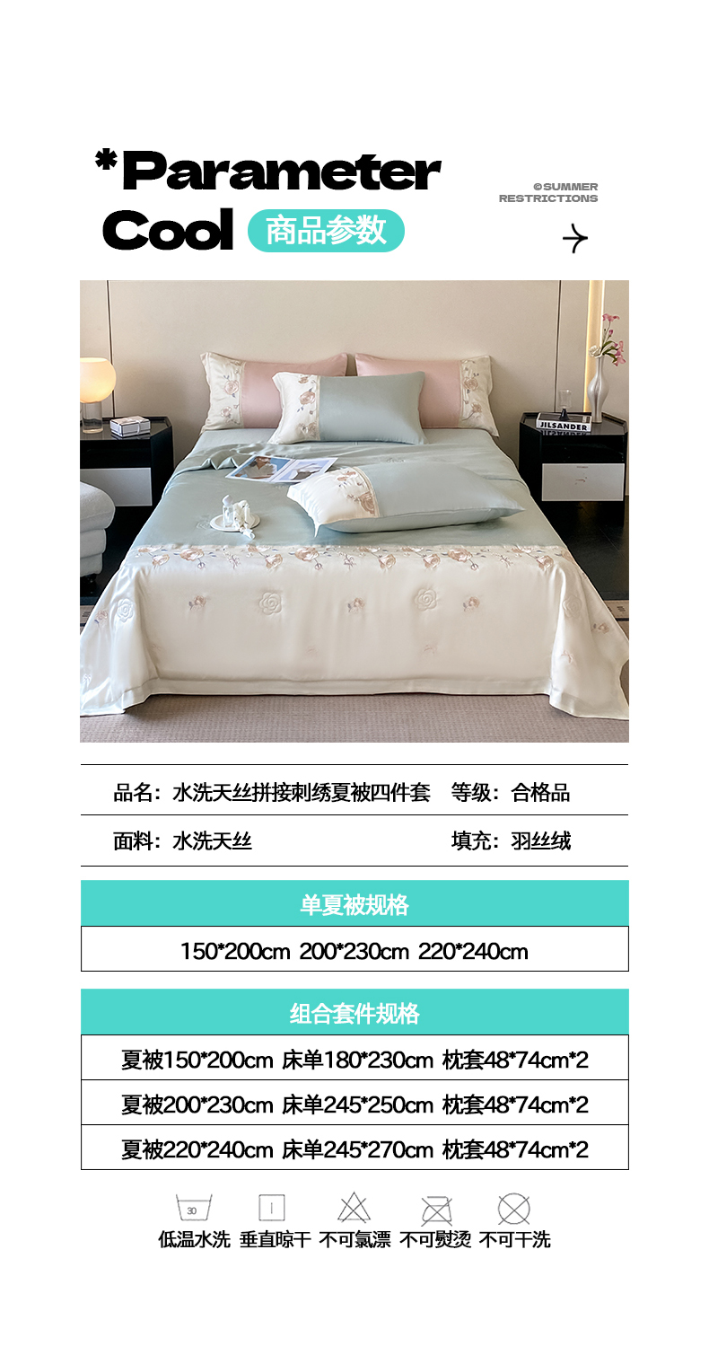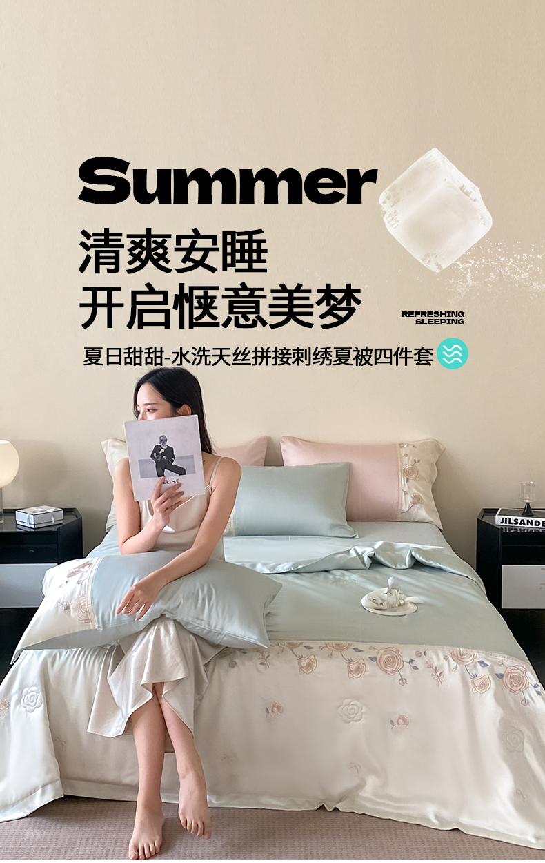 当前位置: 91家纺网 > 商品网购 > 床品套件 > 四件套 > 夏被四件套 > 置顶家纺 2026新款水洗天丝夏被四件套-夏日甜甜 夏日甜甜-浅蓝