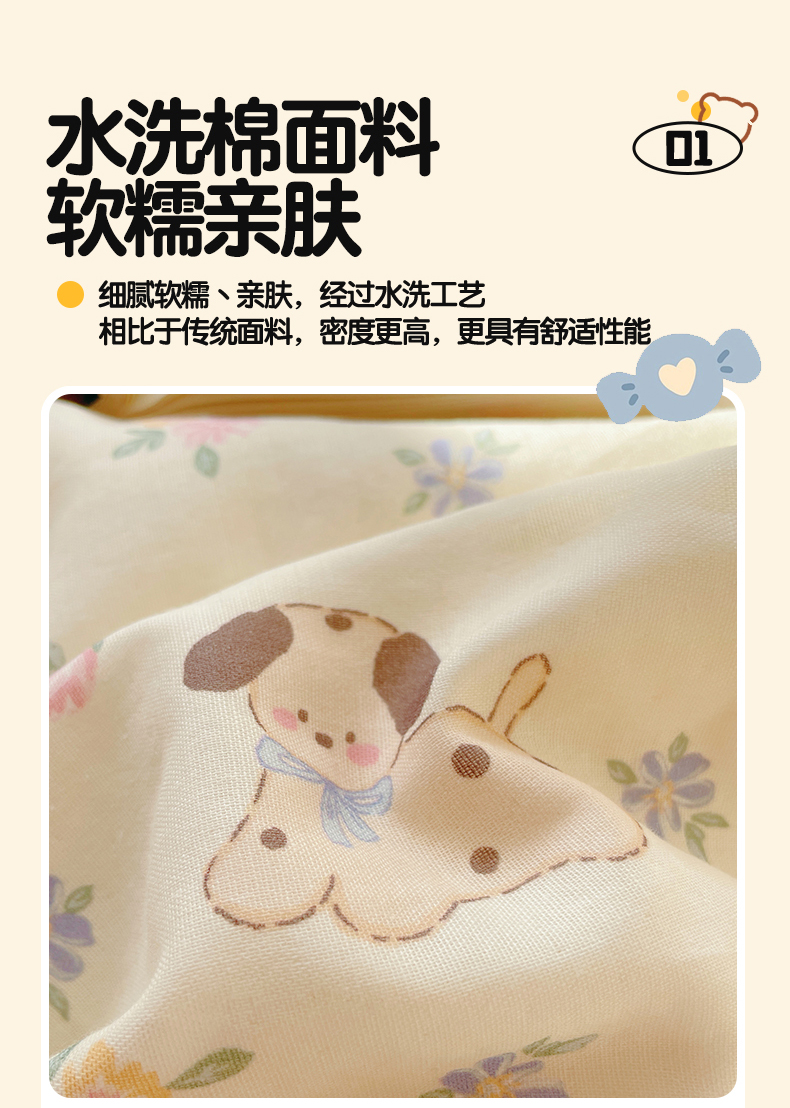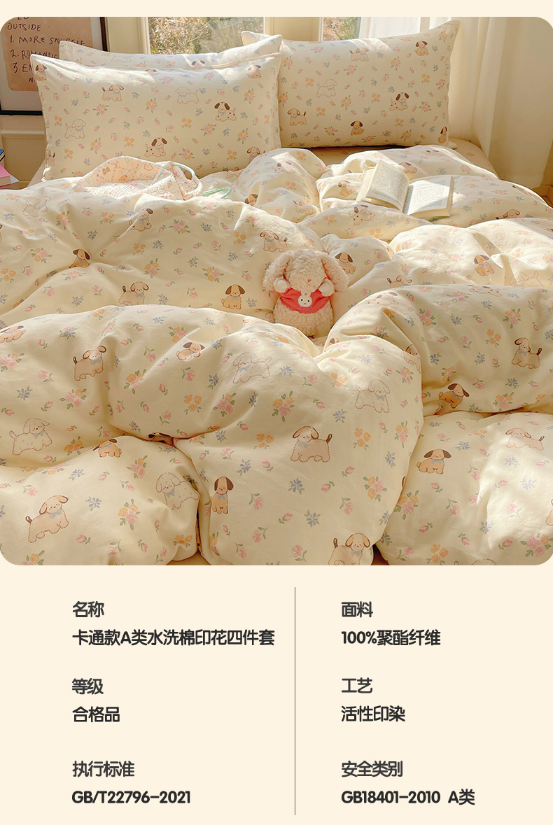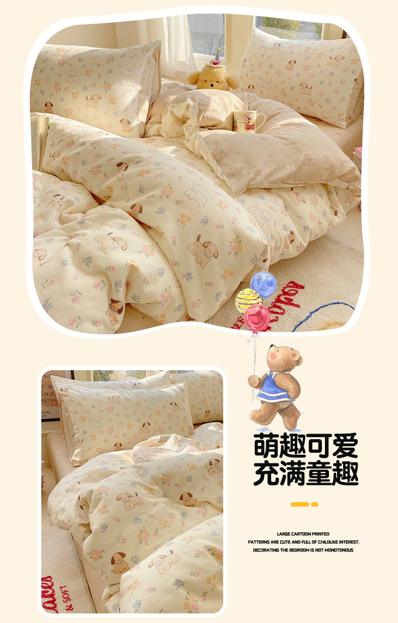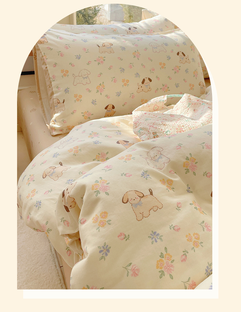 当前位置: 91家纺网 > 商品网购 > 床品套件 > 四件套 > 水洗棉四件套 > 盛秋家纺 2026新款卡通款A类水洗棉印花四件套 田园萌狗+花朵咖