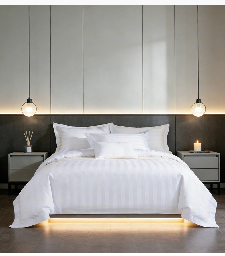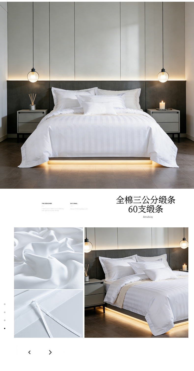 当前位置: 91家纺网 > 商品网购 > 床品套件 > 四件套 > 全棉普通四件套 > (总)宜眠家纺 2026高端新款连锁酒店四件套60支全棉纯棉缎条五星级酒店宾馆四件套