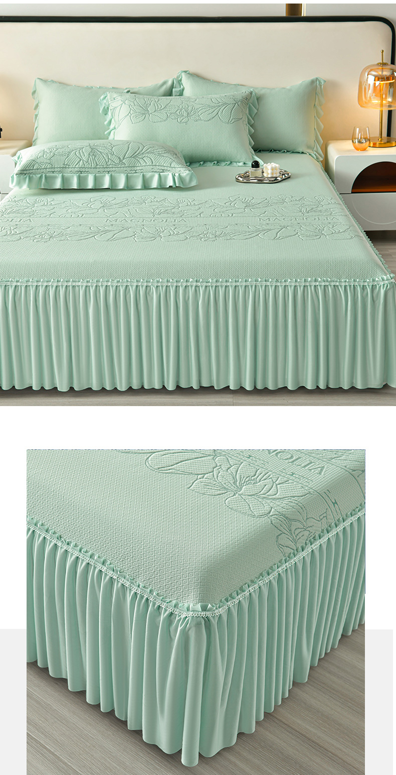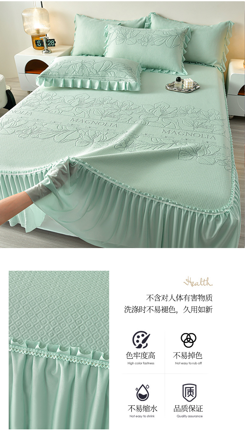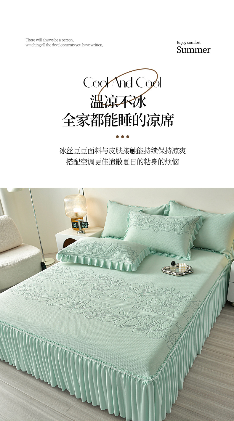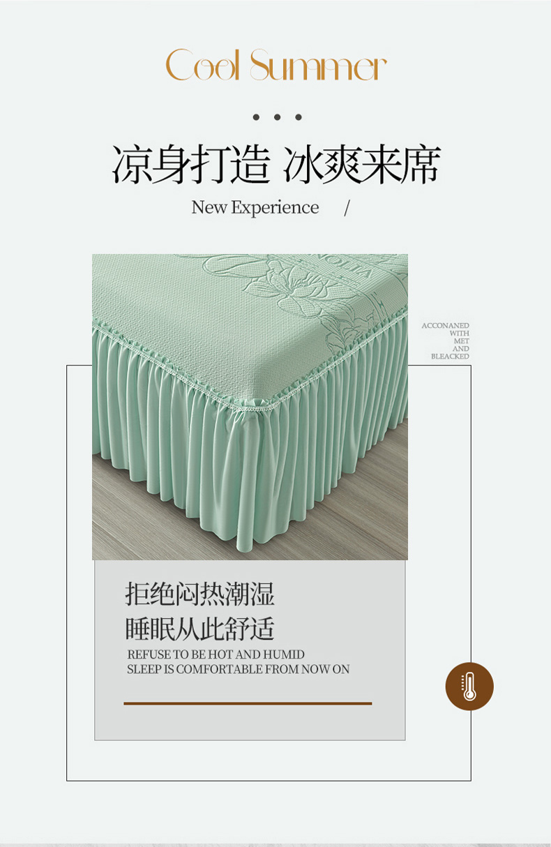诺梵家纺 2026新款 pe 乙纶立体提花凉豆豆席凉席床裙款【控价1.5米119 ;1.8米129;2.0米139】半夏-绿