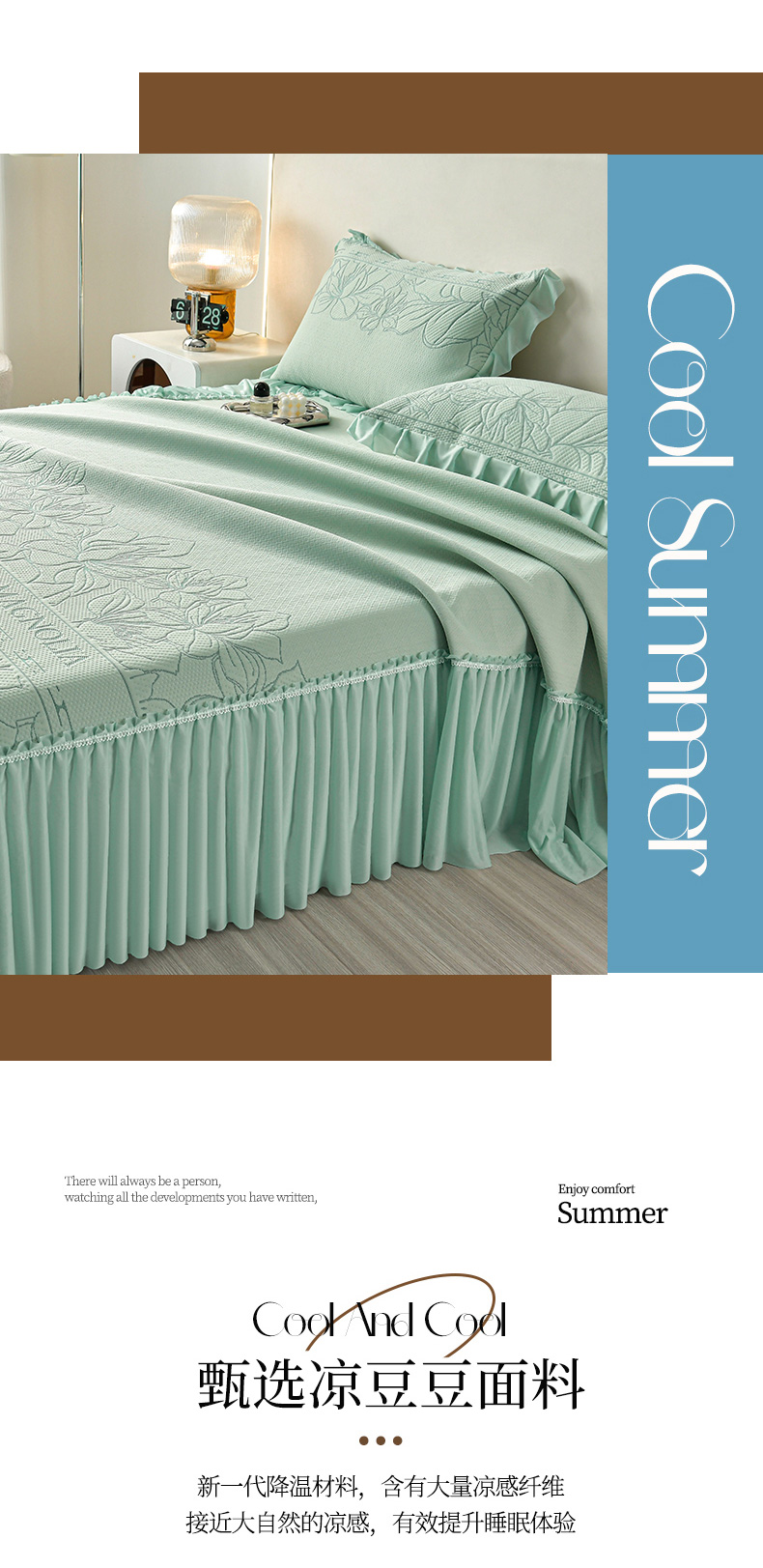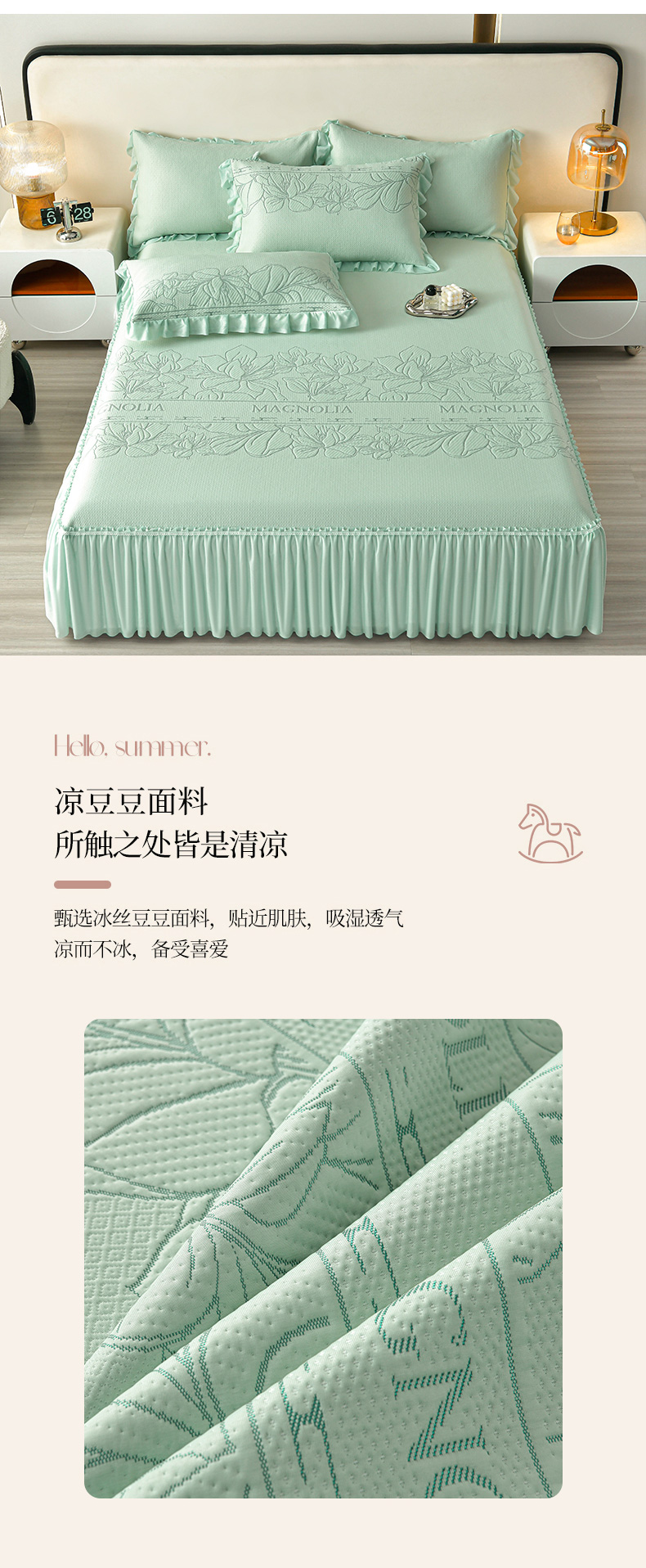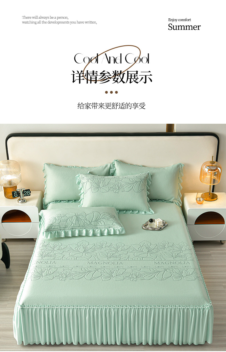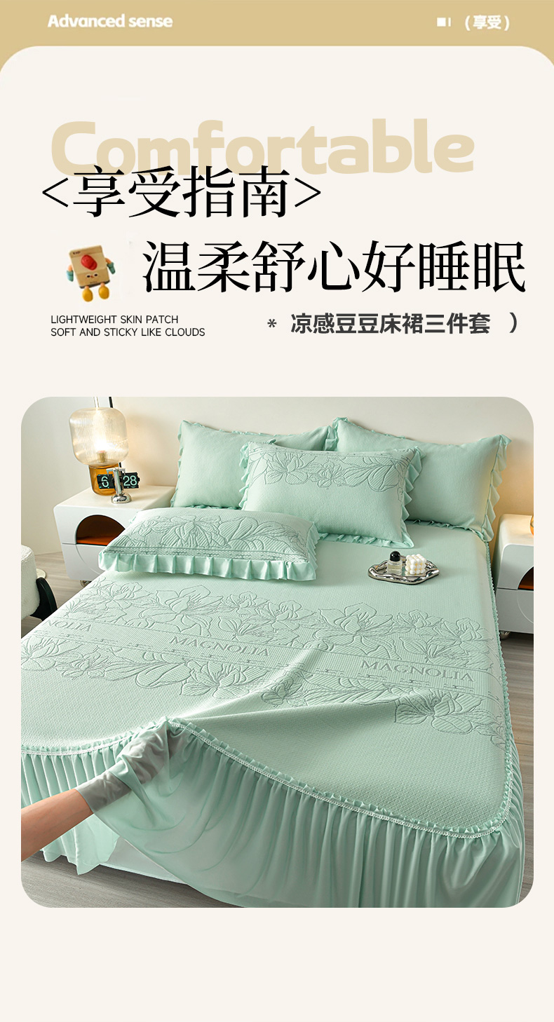 诺梵家纺 2026新款 pe 乙纶立体提花凉豆豆席凉席床裙款【控价1.5米119 ;1.8米129;2.0米139】半夏-绿
