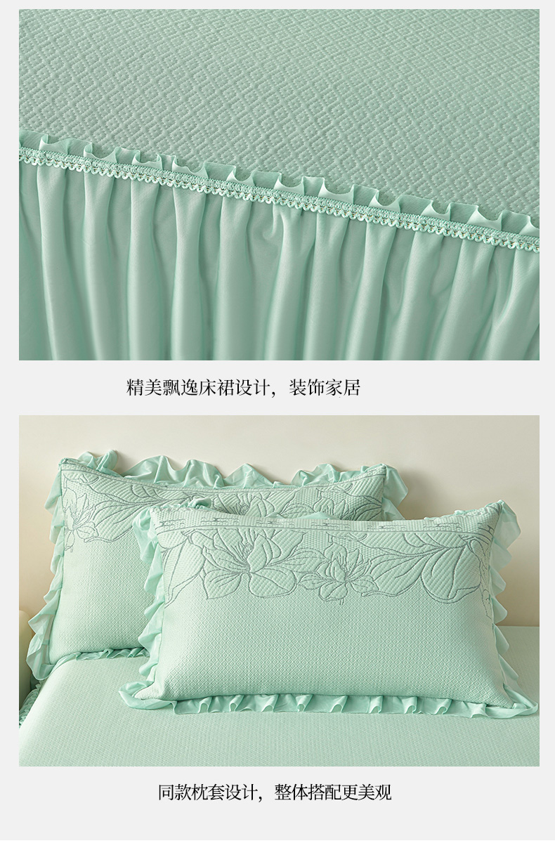商品名称:诺梵家纺 2026新款 pe 乙纶立体提花凉豆豆席凉席床裙款【控价1.5米119 ;1.8米129;2.0米139】半夏-绿