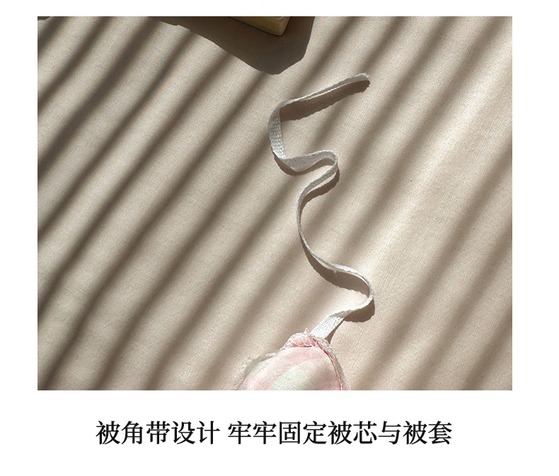 商品名称:首尔家纺 2026新款全棉色织水洗棉四件套花边款小红书ins风-樱桃可露丽 樱桃可露丽-粉格