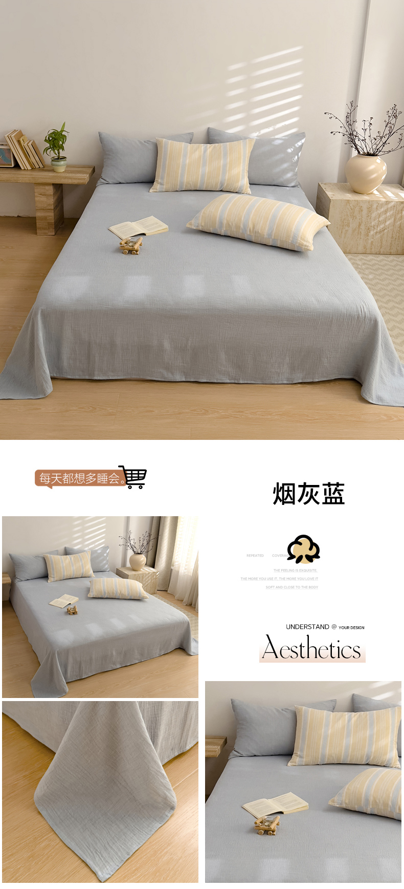 当前位置: 91家纺网 > 商品网购 > 床上用品 > 床单 > DoDo 兜兜 2026年全棉纯棉A类色织皱皱纱床单单件 单床单 小半-灰