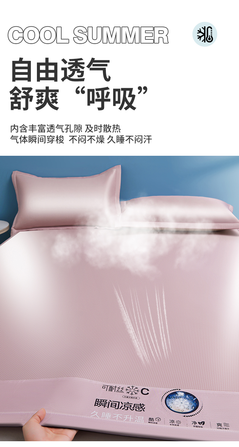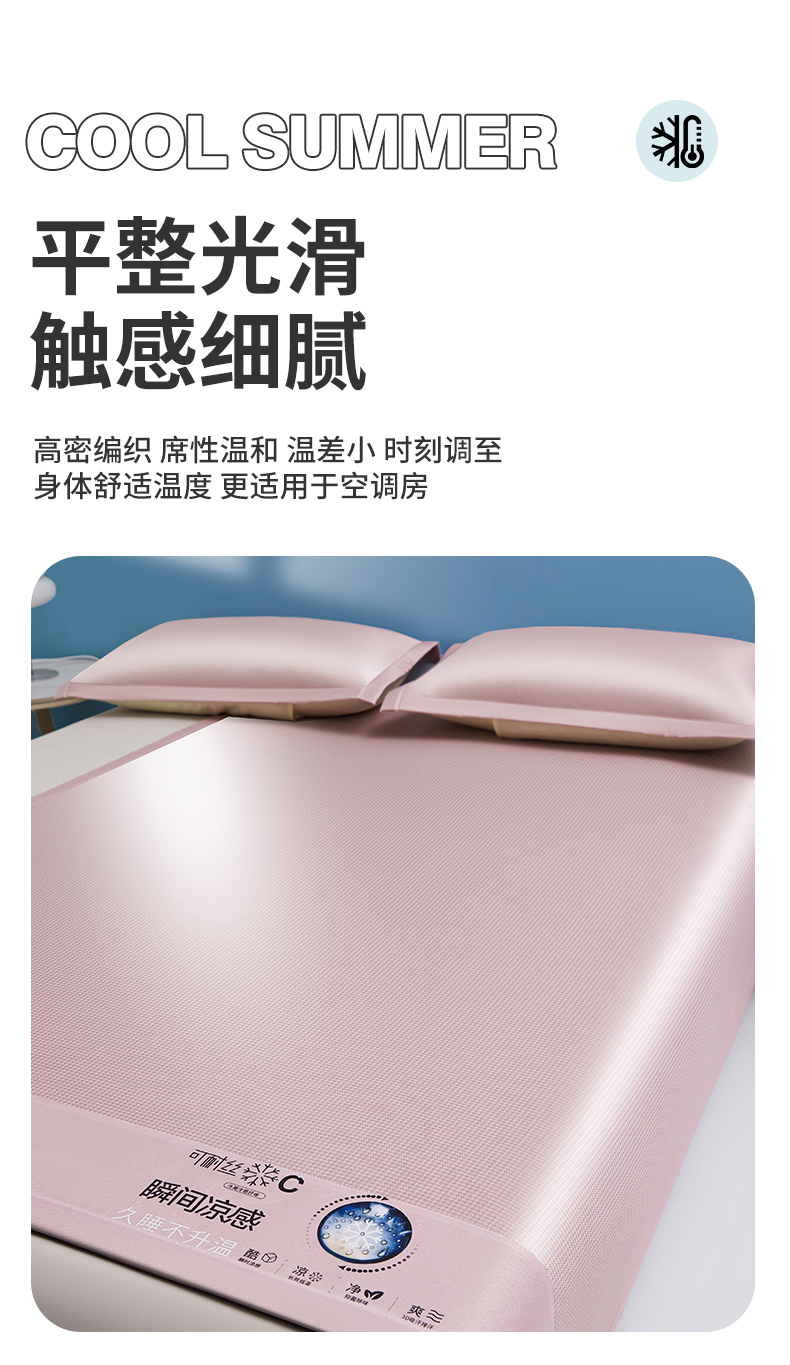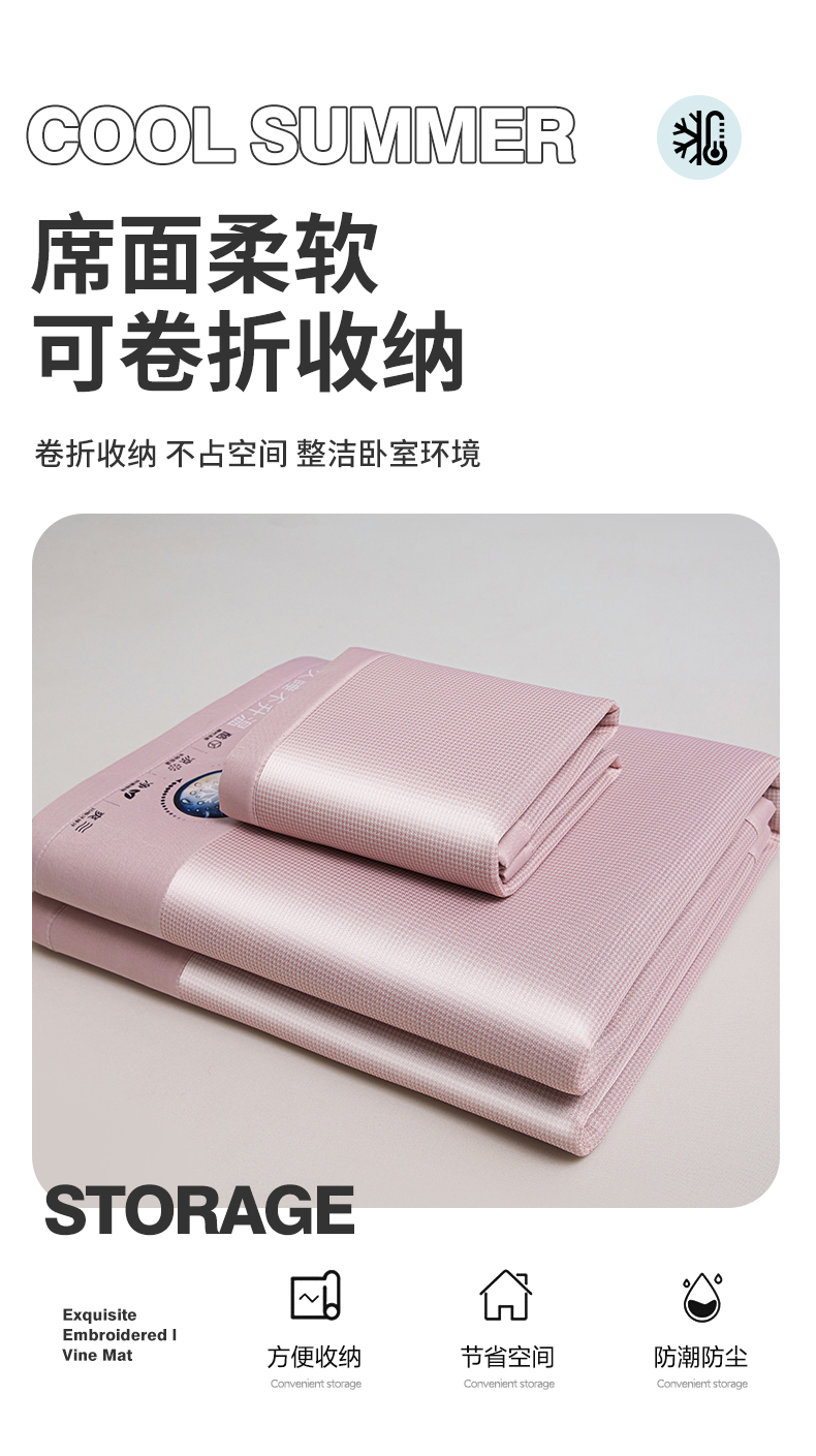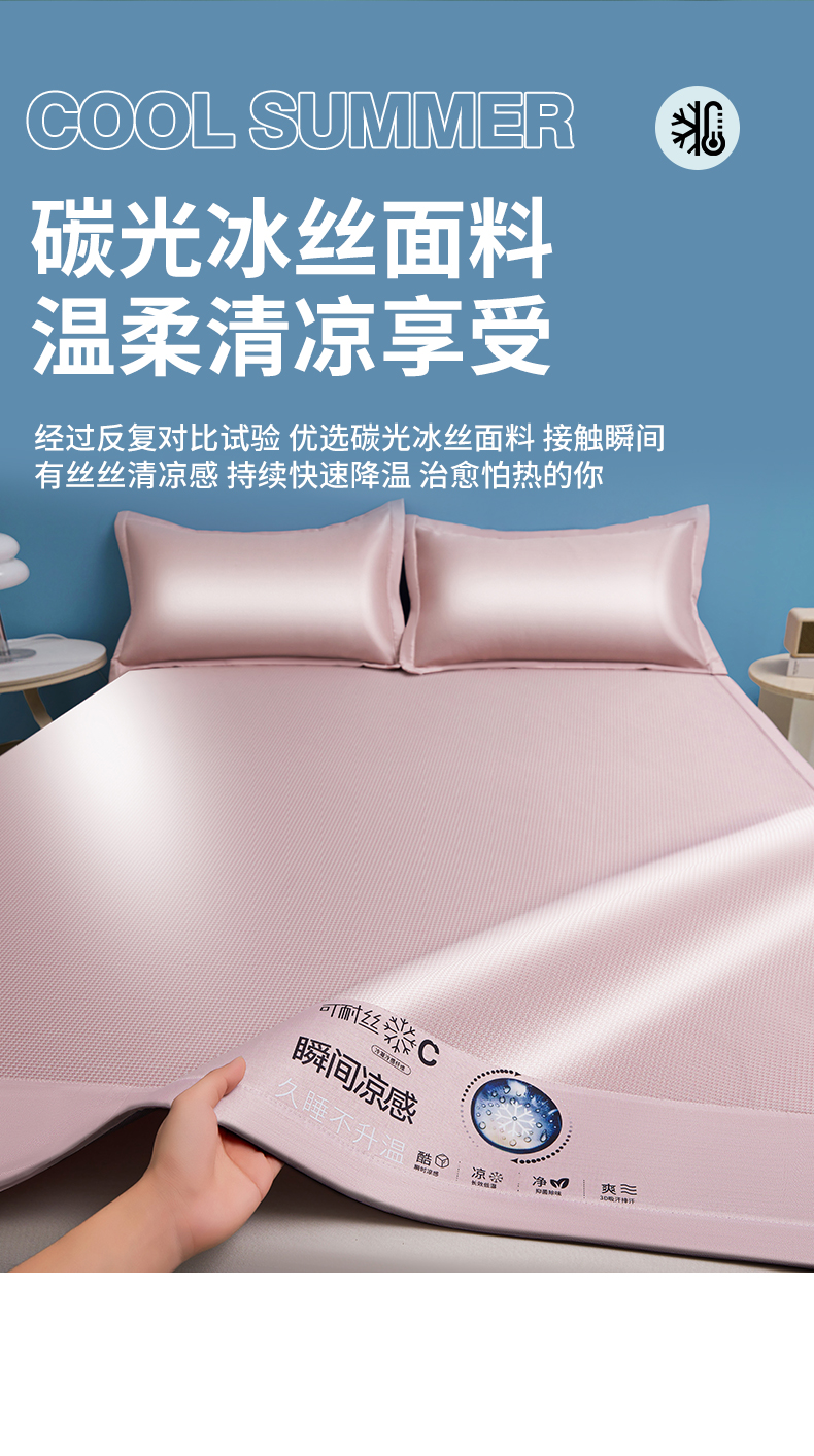 当前位置: 91家纺网 > 商品网购 > 床上用品 > 凉席 > 义博家纺 2026新款碳光提花冰丝席床席款床单款 千鸟格 雅粉