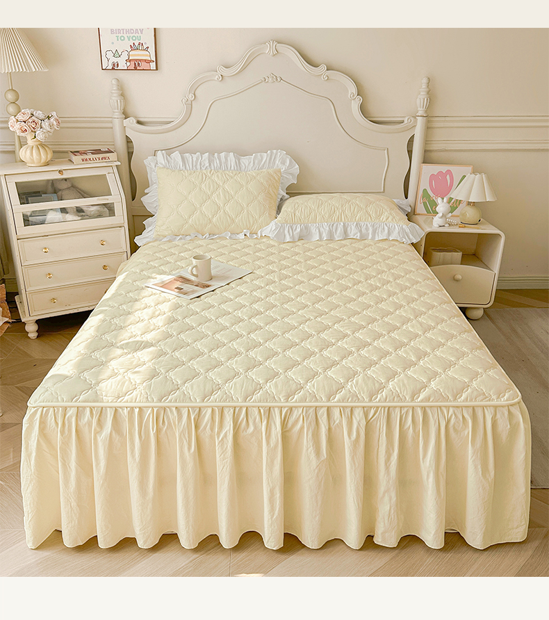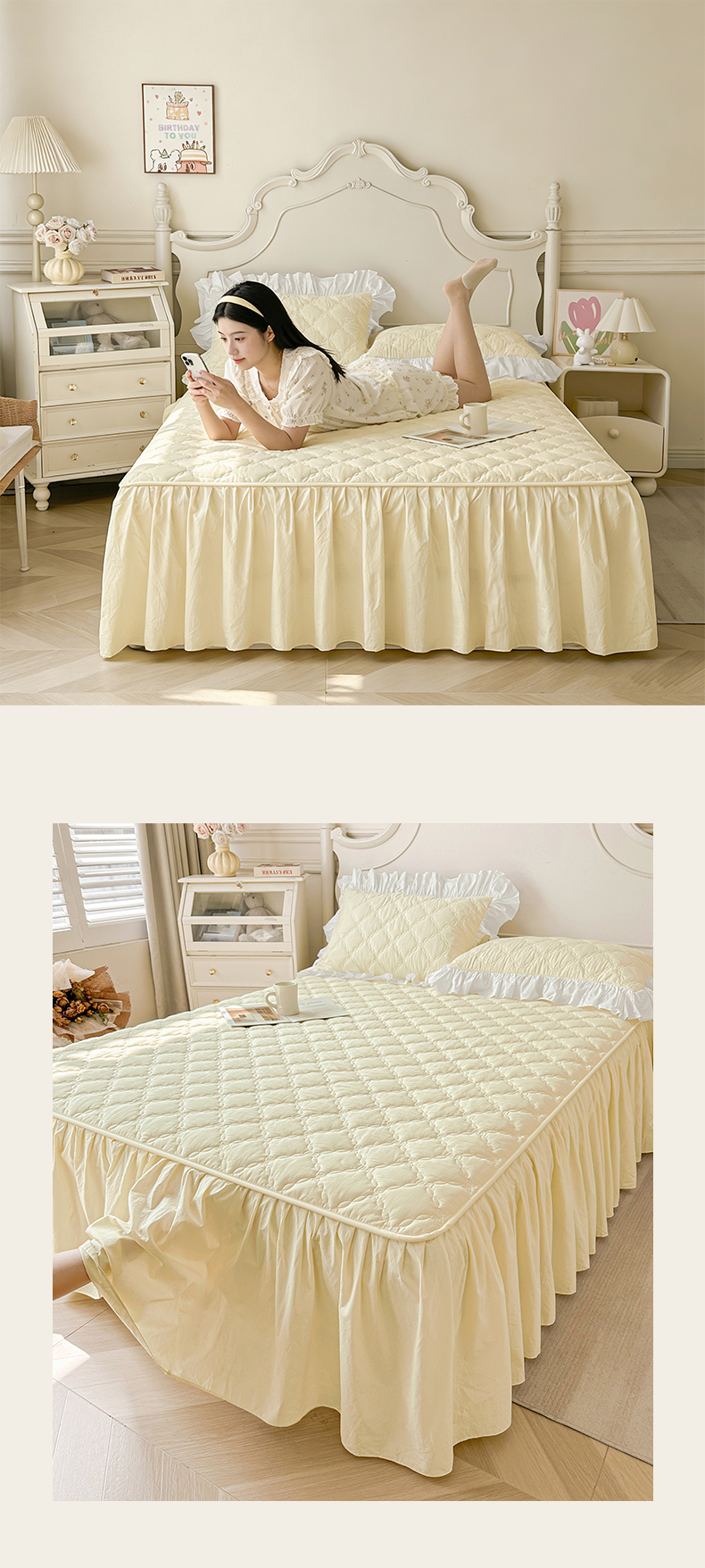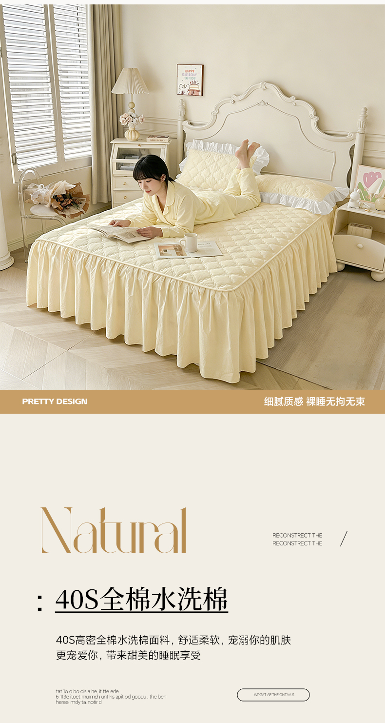 佳笠家居 2026春夏新款A类韩版全棉水洗棉新疆棉花少女风床裙单件床裙单品单床裙-床拍图 床裙款-象牙黄