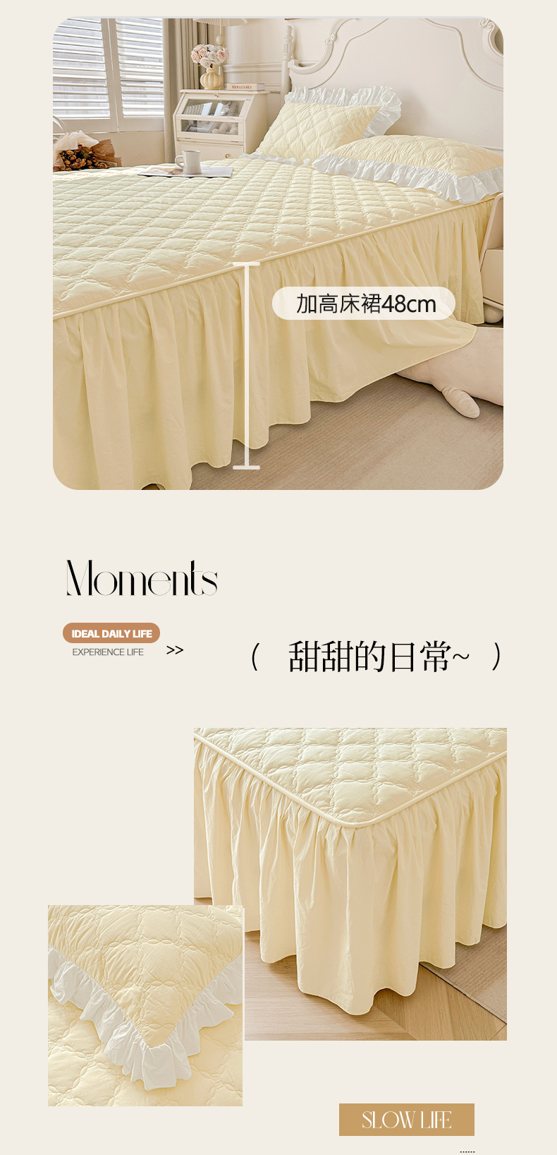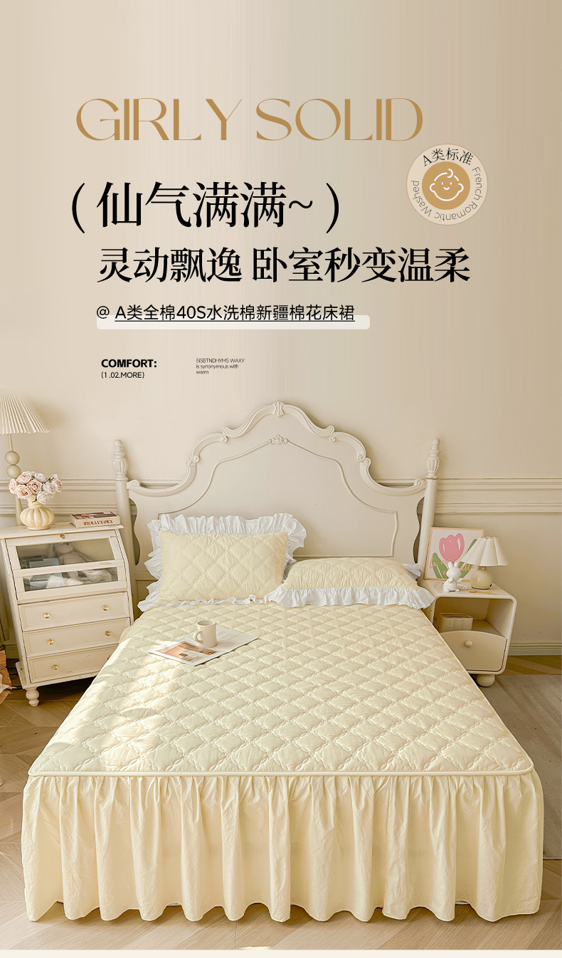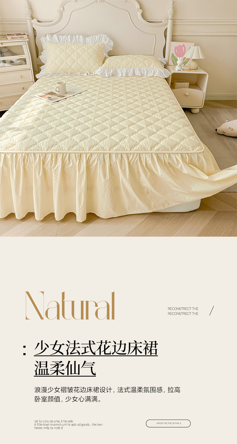 • 91家纺网 家纺一手货源 找家纺 佳笠家居 2026春夏新款A类韩版全棉水洗棉新疆棉花少女风床裙单件床裙单品单床裙-床拍图 床裙款-象牙黄