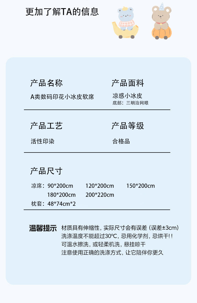 • 91家纺网 家纺一手货源 找家纺 (总)家品罗兰 2026A类数码印花大版卡通冰丝凉席家用双人冰丝席可机洗单人学生宿舍夏天空调软席,萌象木马【三明治网底】,萌宝小火车【三明治网底】,精灵小兔【三明治网底】,呆萌恐龙【三明治网底】,月亮熊【三明治网底】,满天星辰【三明治网底】,海豚奇遇【三明治网底】,动物乐园【三明治网底】,星际漫游【三明治网底】,蘑菇城堡【三明治网底】