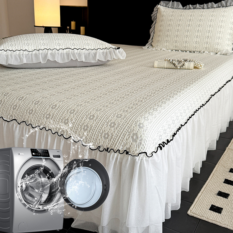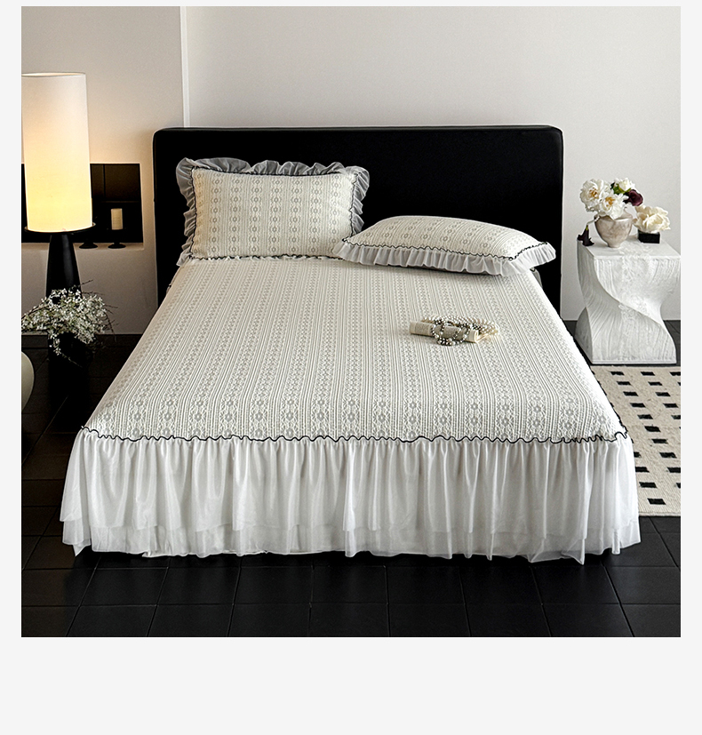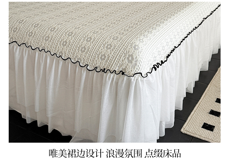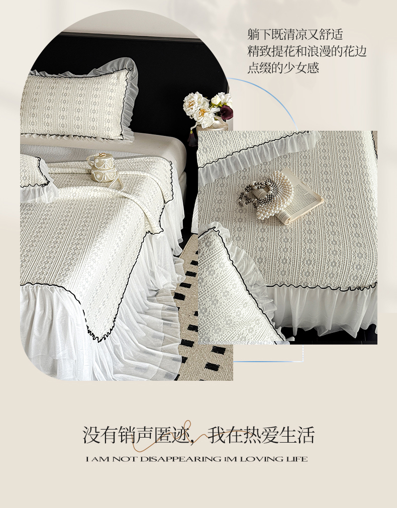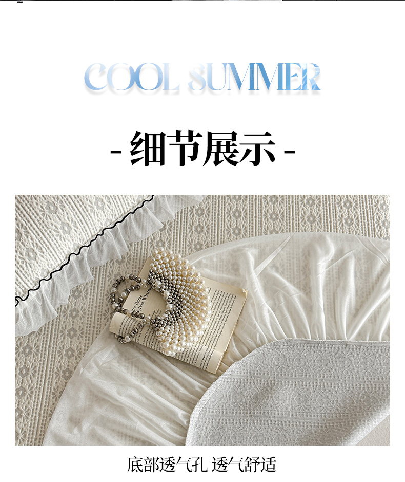 当前位置: 91家纺网 > 商品网购 > 床上用品 > 凉席 > 羚羊语家纺 2026新款韩式PE提花凉泡泡席床裙款中分子【凉感值>2.0】花边乙纶冰豆豆夏季凉感冰丝软席三件套 白月光-夏韵(配洗护袋)