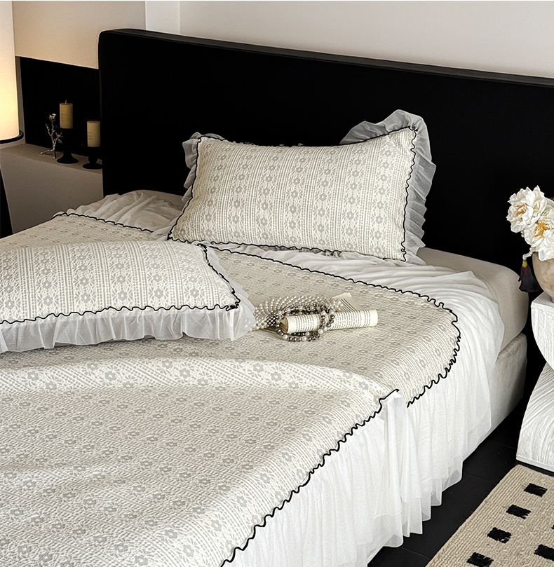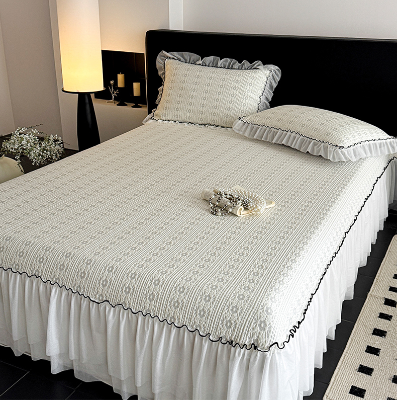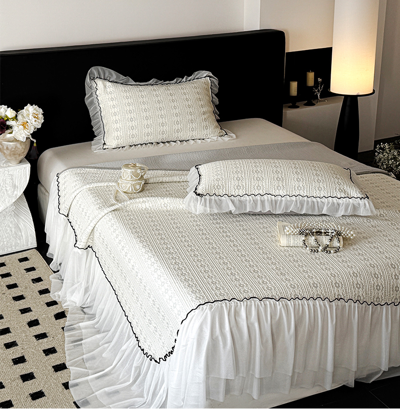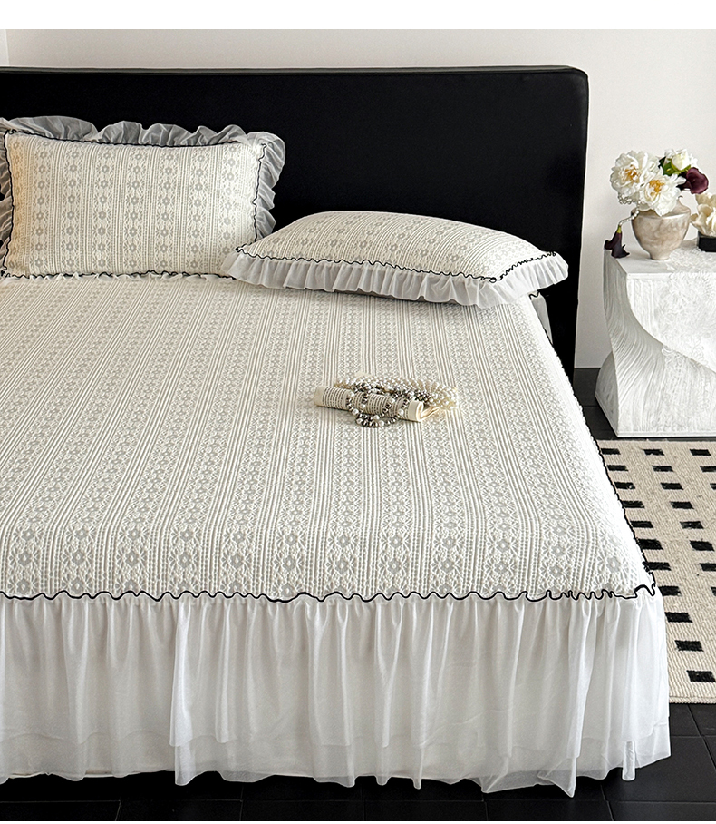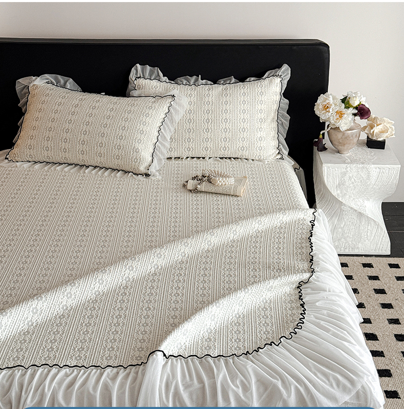 当前位置: 91家纺网 > 商品网购 > 床上用品 > 凉席 > 羚羊语家纺 2026新款韩式PE提花凉泡泡席床裙款中分子【凉感值>2.0】花边乙纶冰豆豆夏季凉感冰丝软席三件套 白月光-夏韵(配洗护袋)