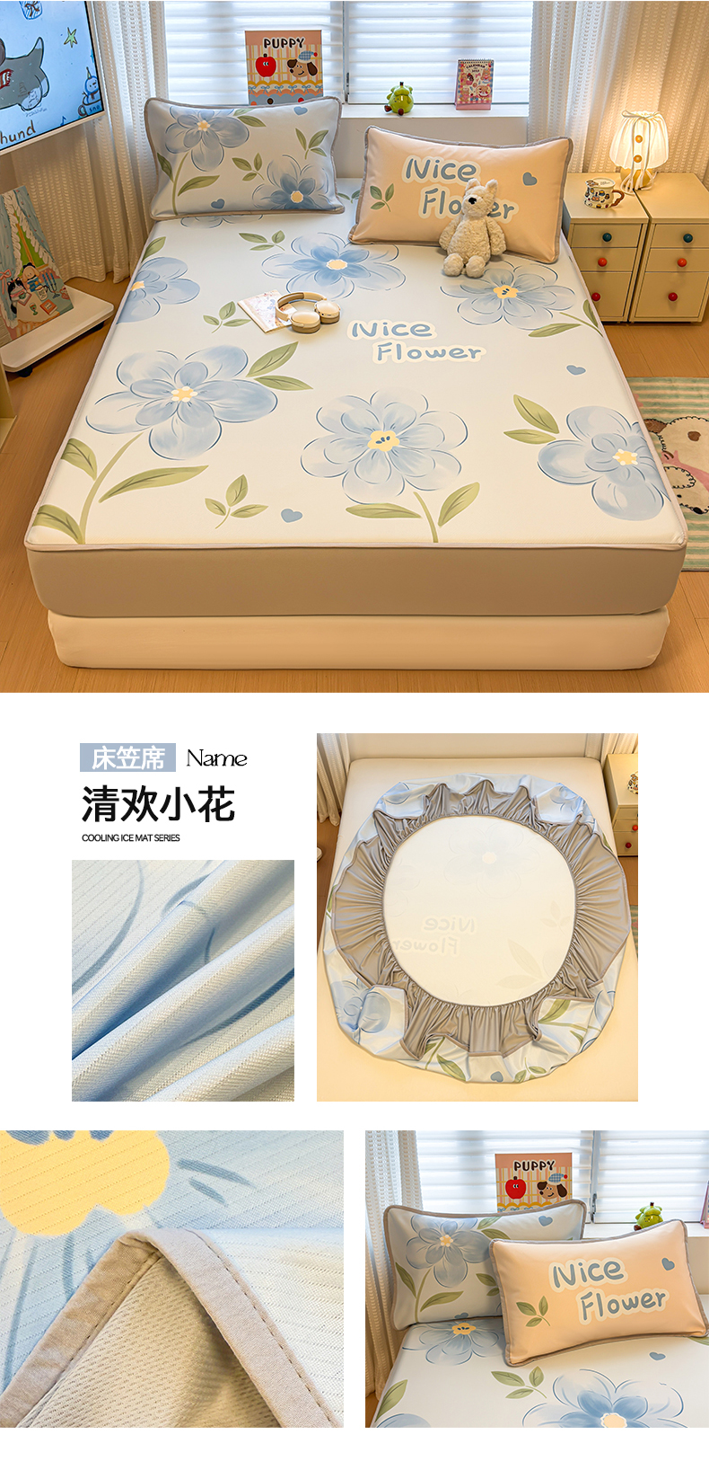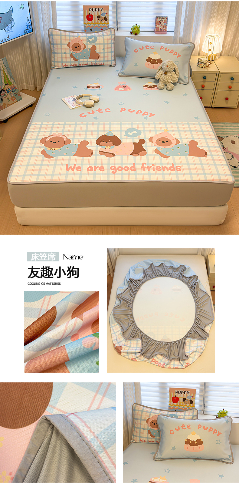 (总)懒猫家纺 2026新款大版卡通凉感冰丝床笠款凉席席子,床笠席-彩豆旺柴,床笠席-绿格小熊,床笠席-清欢小花,床笠席-绅士狗狗,床笠席-甜宠小猫,床笠席-甜梦星愿,床笠席-幸运家族,床笠席-友趣小狗,床笠席-元气小狗