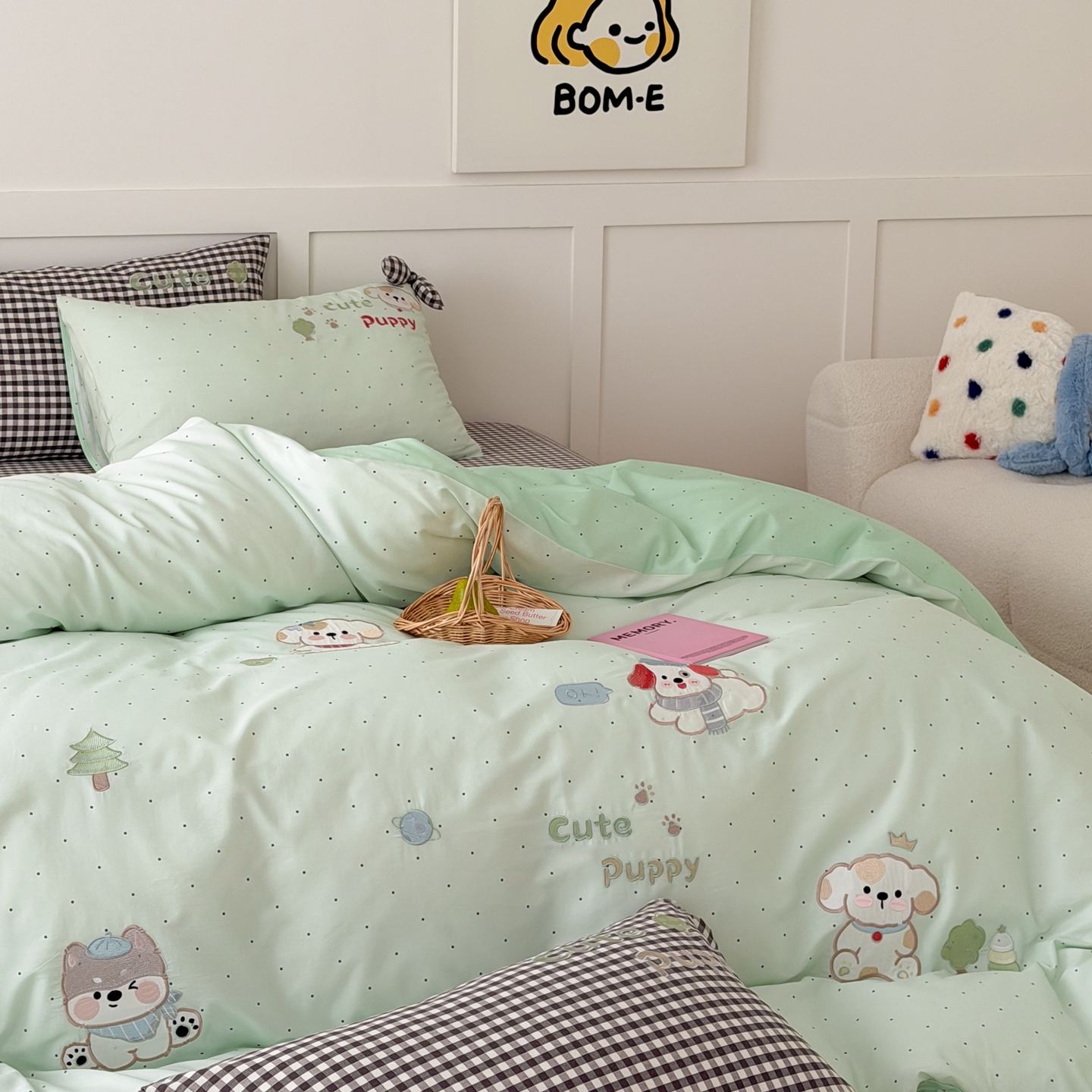 当前位置: 91家纺网 > 商品网购 > 床品套件 > 四件套 > 全棉普通四件套 > 懒猫家纺 2026新款【童趣系列】全棉纯棉印花刺绣套件【带礼盒】【带图片同款立体蝴蝶结】 狗狗的森旅