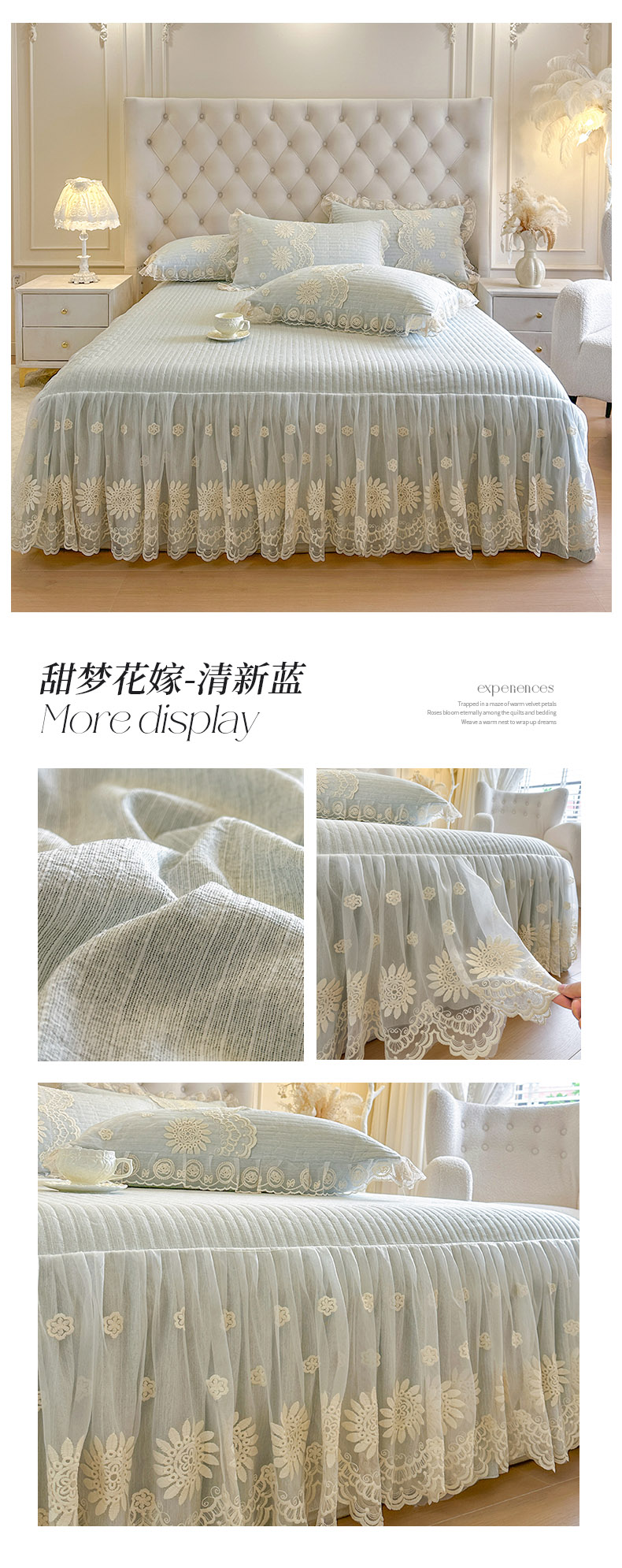 恋尚 2026新款甜梦花嫁色织麻床裙蕾丝夹棉床裙床笠控价床裙135起,床裙三件170,甜梦花嫁系列 甜梦花嫁-清新蓝