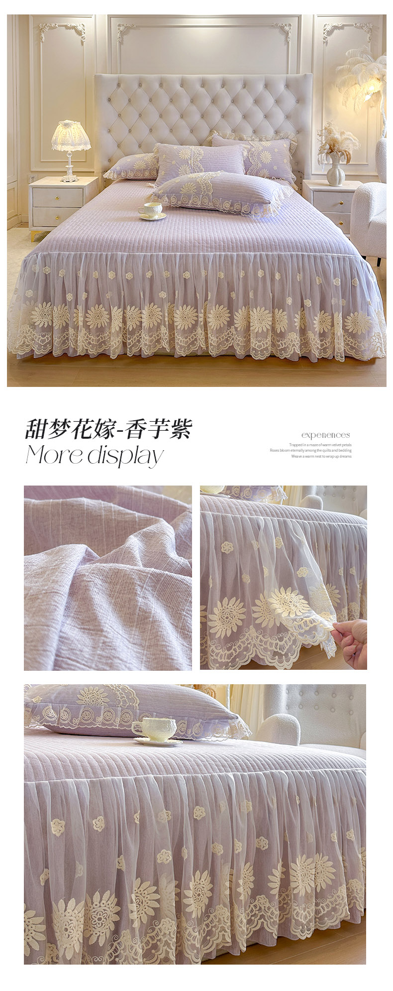 (总)恋尚 2026新款提花蕾丝夹棉床裙四件套-安妮梦【控价床裙135起 床裙三件170起 四件270起】,安妮梦-米黄,安妮梦-清新粉,安妮梦-水兰,安妮梦-香芋紫