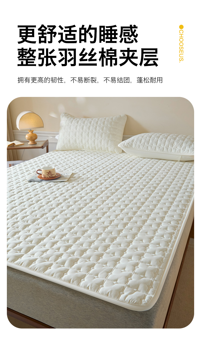 (总)居眠 2026新款防水防滑夹棉床护垫-花叶,花叶-白,花叶-粉,花叶-灰,花叶-卡,叠拍