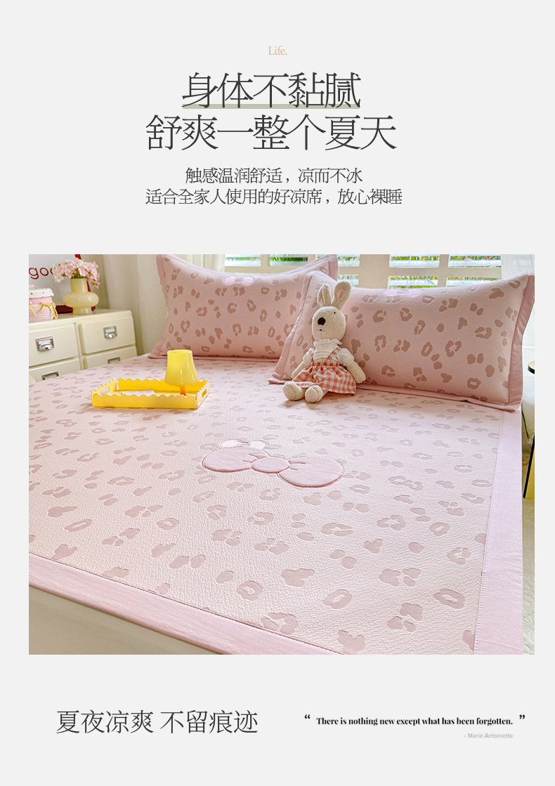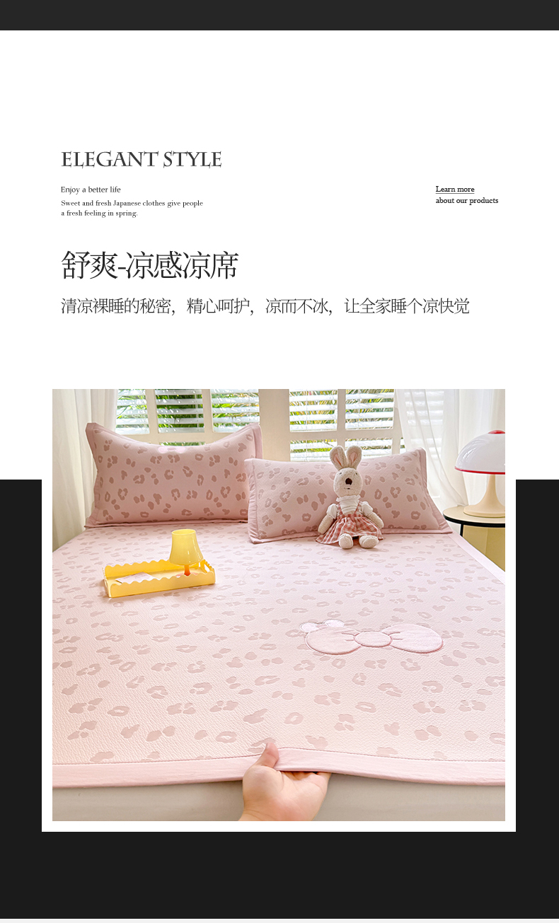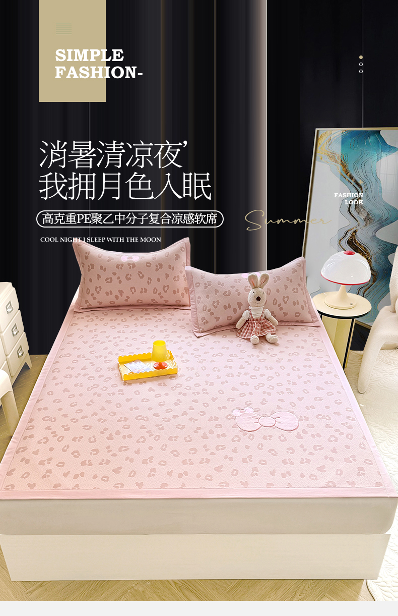 (总)绒棉世家 2026新款高克重PE聚乙中分子复合凉感软席贴布绣三件套凉席,豹纹蝴蝶,健身猫-咖,健身猫-蓝