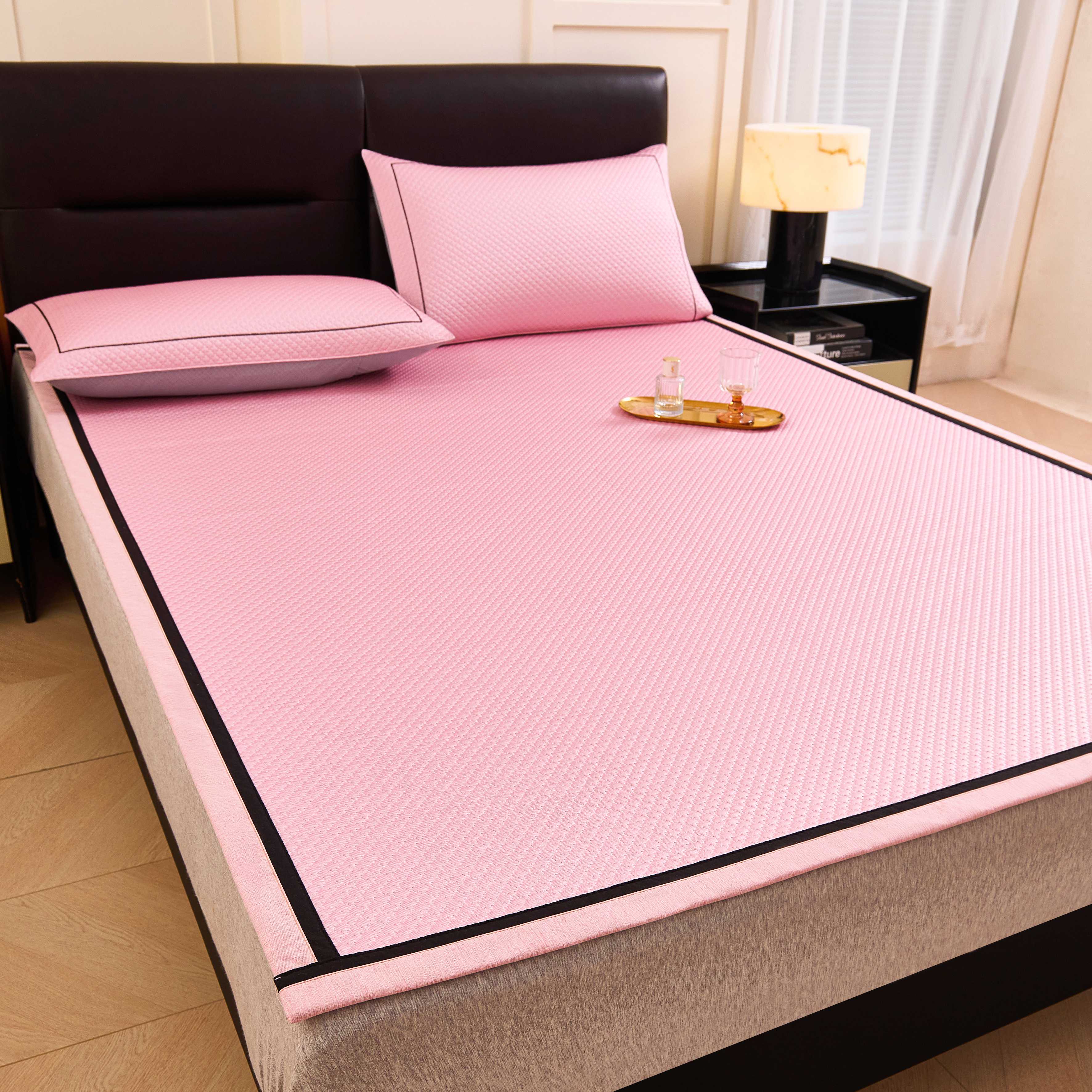 梵克保罗 2026春夏新款凉感豆豆席极简织带平席款凉席极简贴边款 极简粉